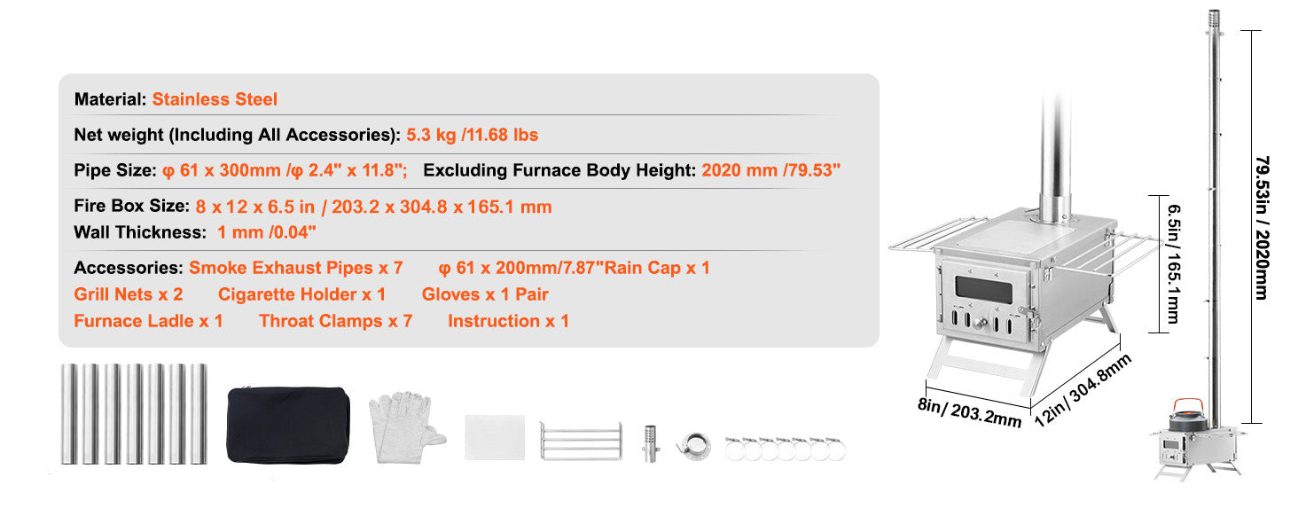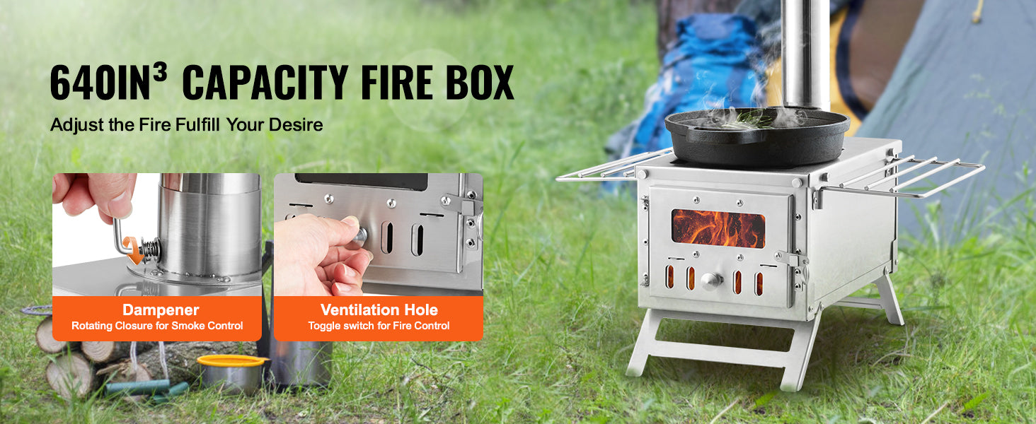 Introducing the Ljustra Portable Camping Wood Stove, your perfect companion for outdoor adventures! With a spacious 700in³ firebox, this stove is designed to efficiently heat your tent or campsite while providing you with the convenience of cooking and grilling.