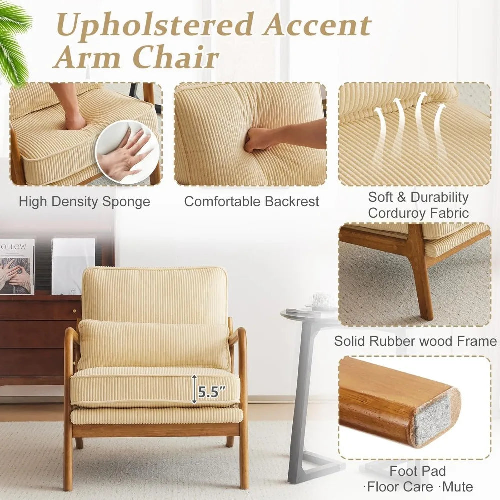 Upgraded Premium Corduroy Accent Chair Comfy Reading Chair Mid Century