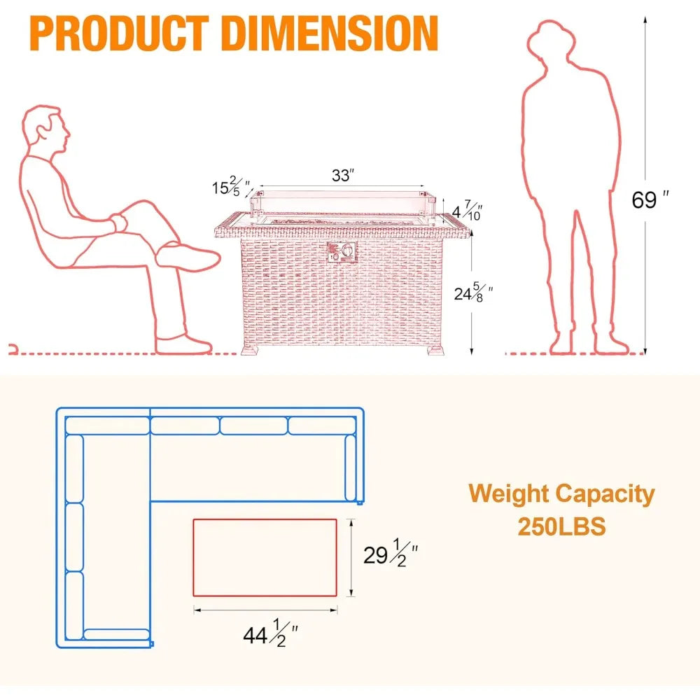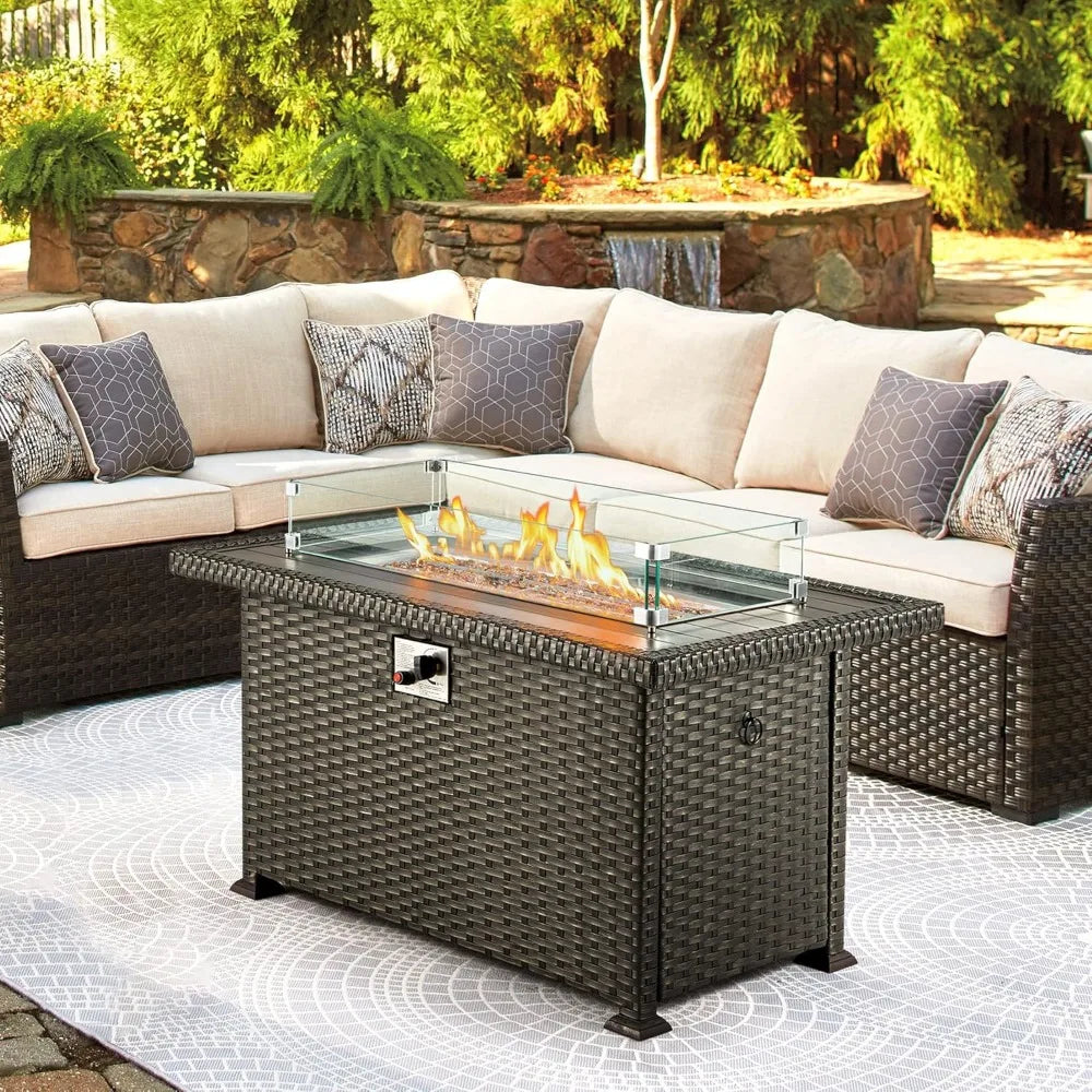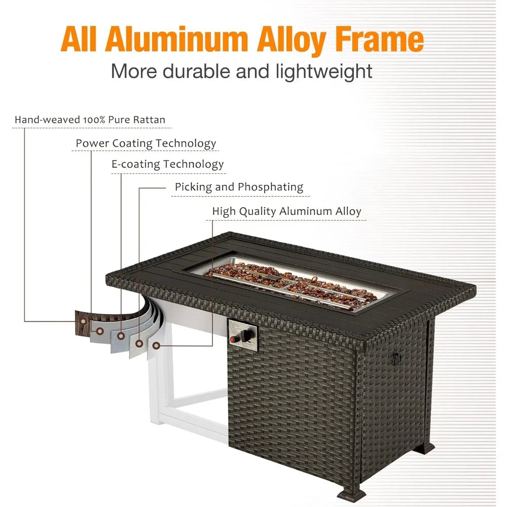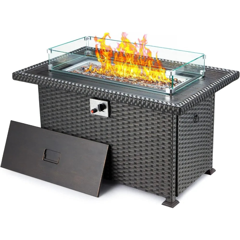 Propane Fire Pit Table 44 Inch 50000 BTU Auto Ignition Rectangular Outdoor