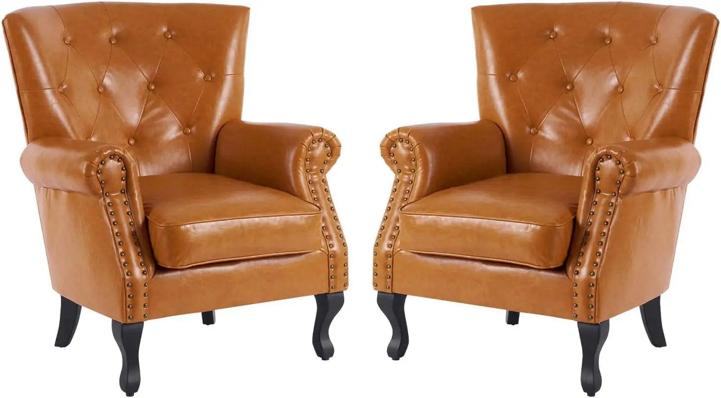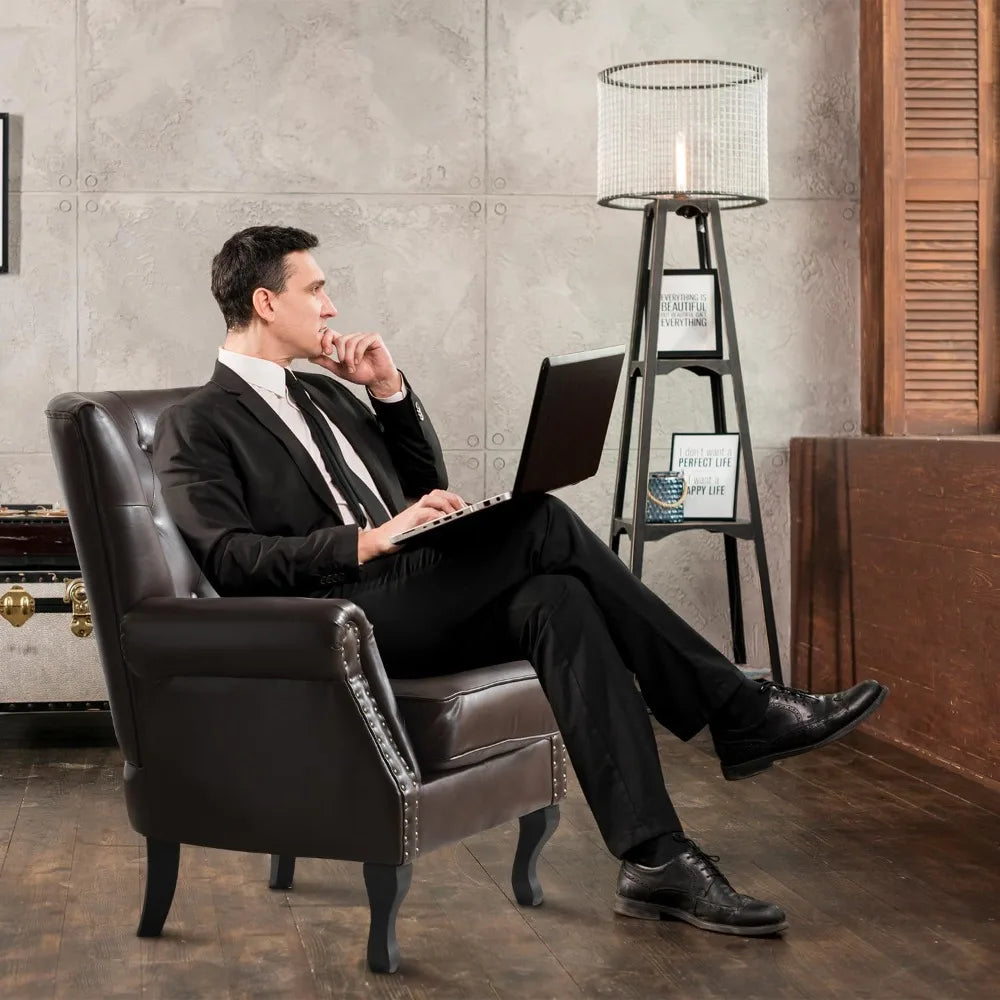 PU Leather Accent Chair Mid Century Modern Wing Back Club Chair