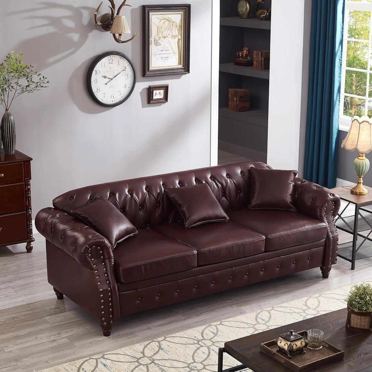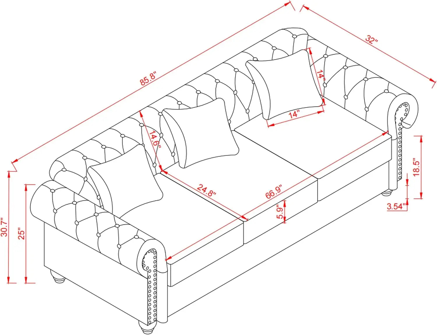 - Tufted Chesterfield Styling: Classic rolled arms, deep button tufting, and nailhead trim offer vintage-inspired elegance.