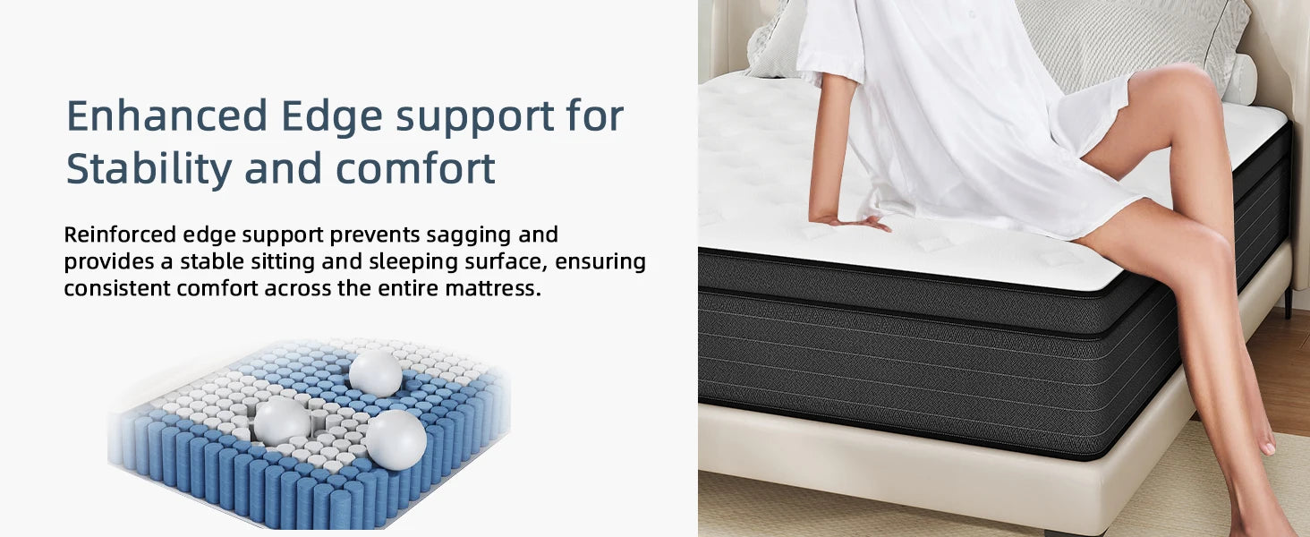 - Enhanced Edge Support: Individual pocket springs with reinforced edges prevent the "roll-off-the-edge" feeling, ensuring safety and stability while you sleep.
