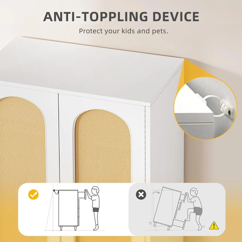 - Ample Storage Space: Features double door storage with hanging rods and shelf dividers, plus a drawer for intimate items and an open bottom space for blankets or books.