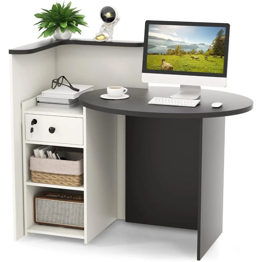 Reception Desk Front Counter Desk with Lockable Drawer and Adjustable Shelf