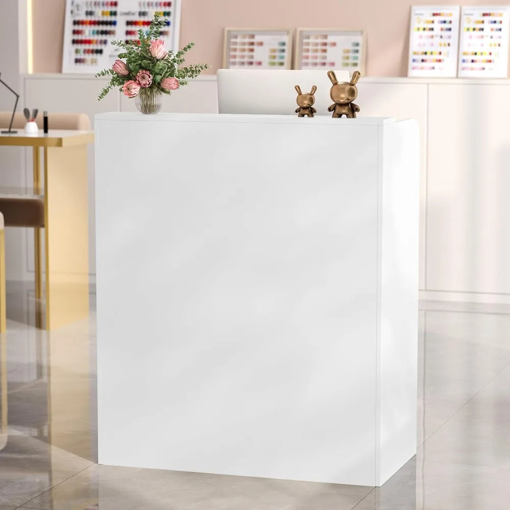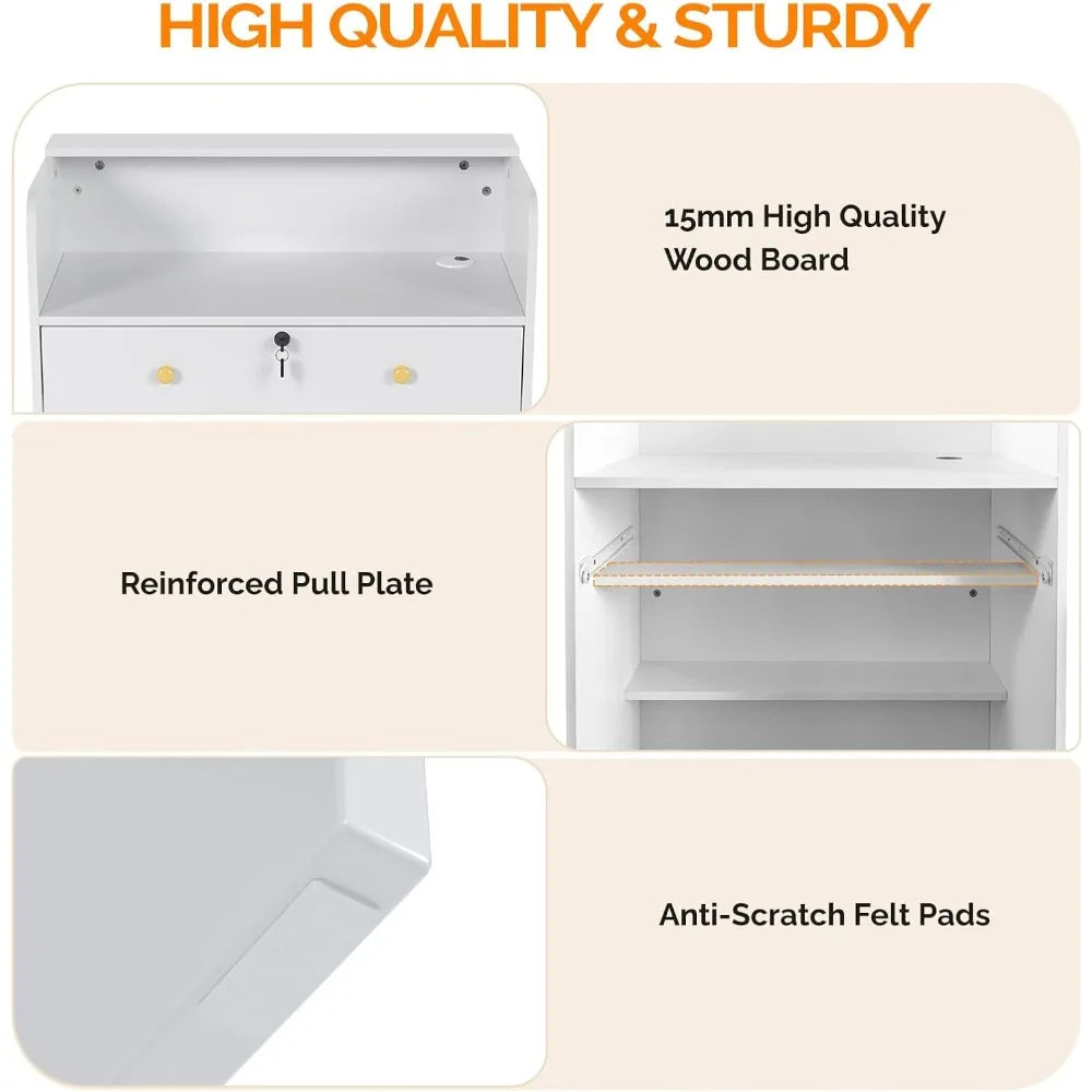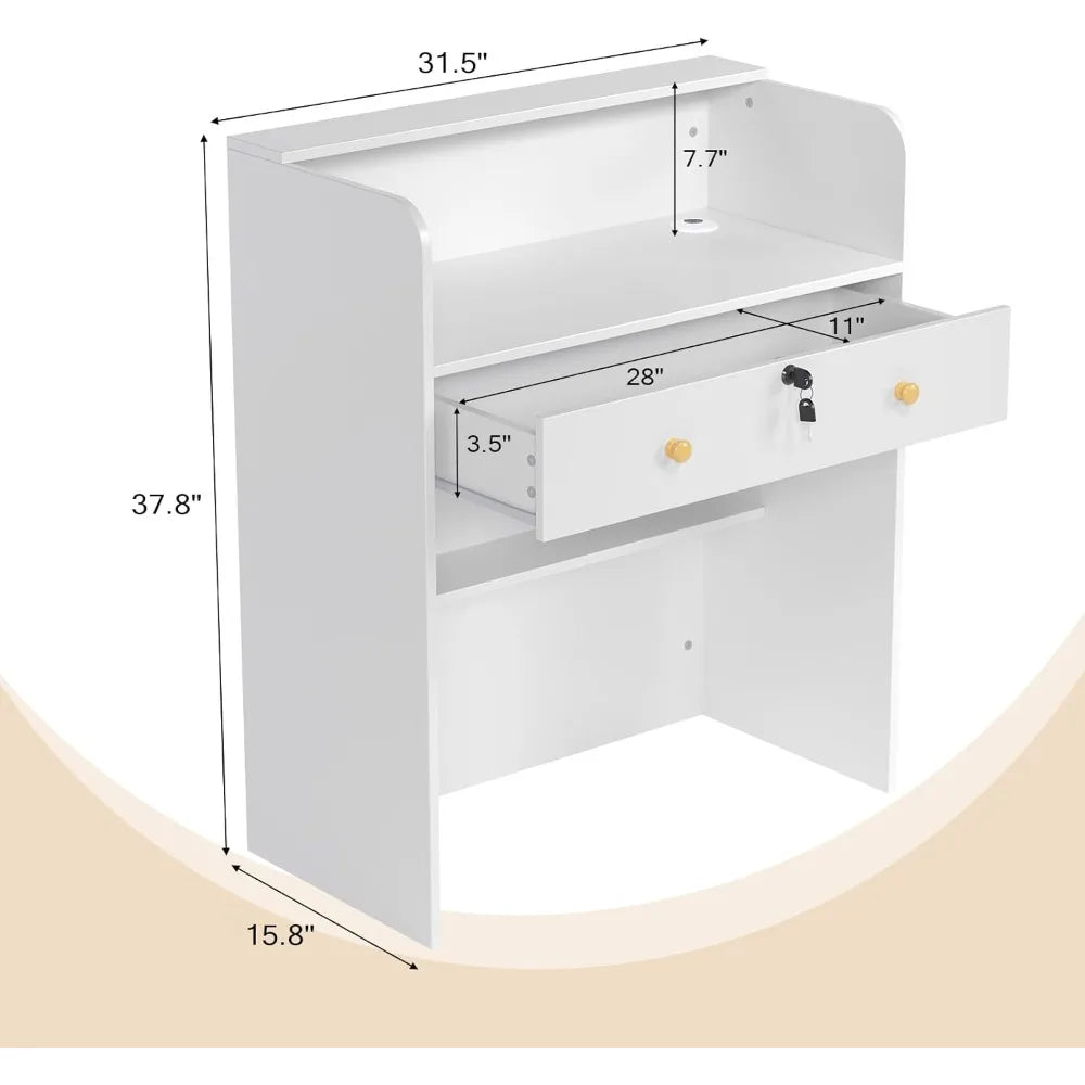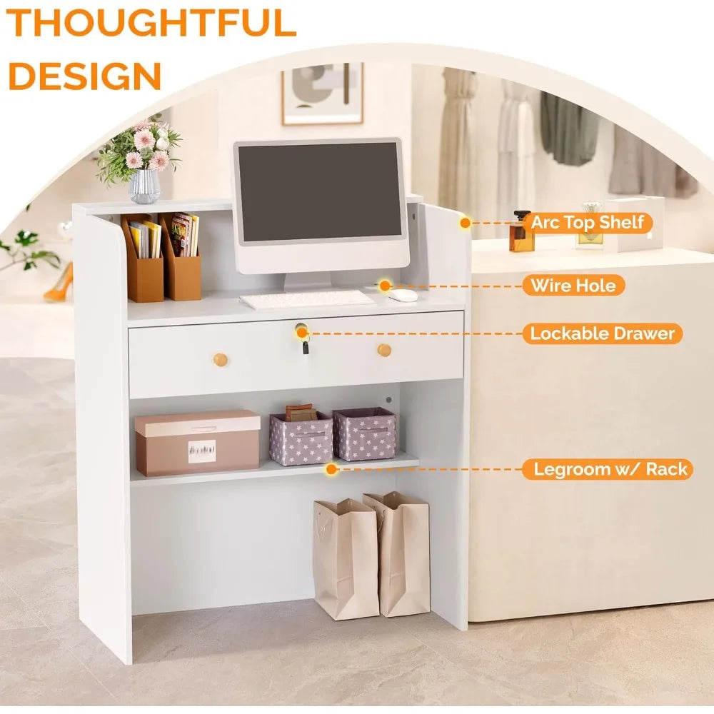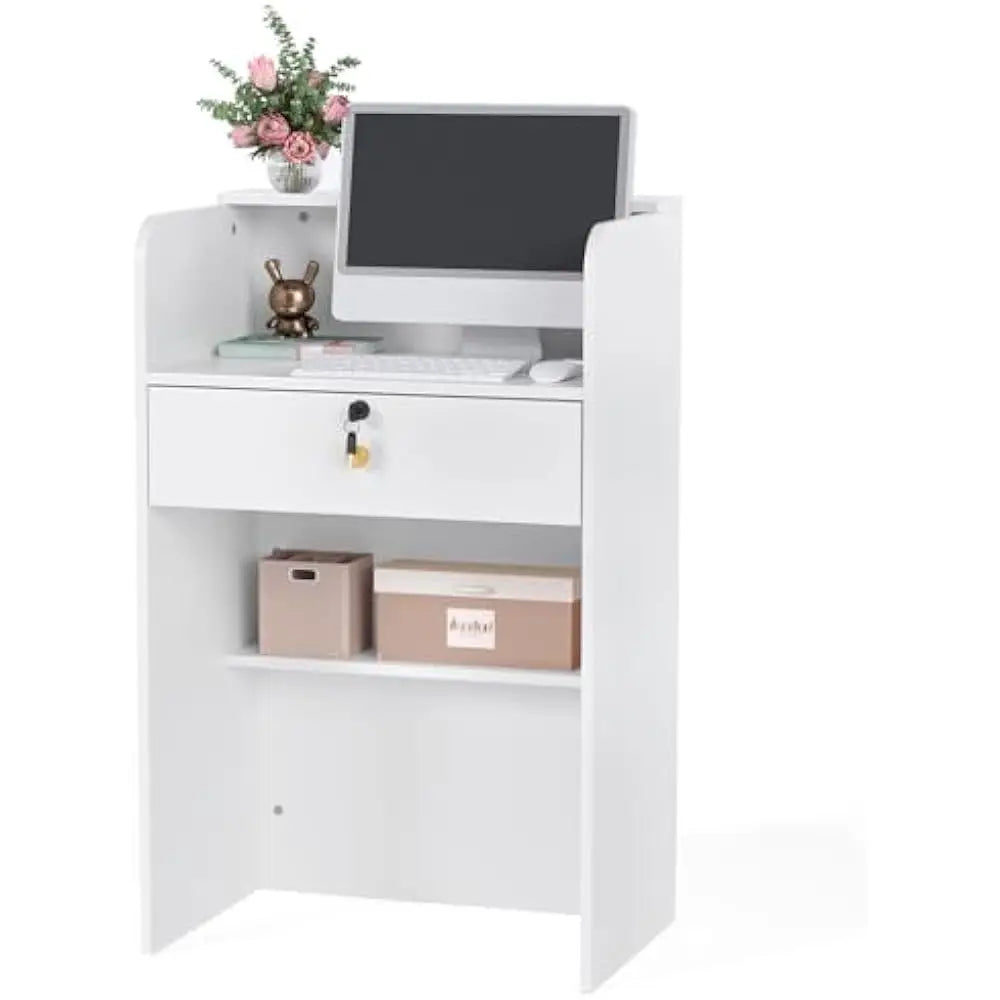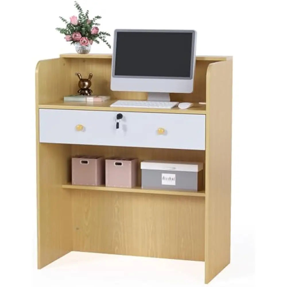 Reception Desk Small Modern Wooden Front Desk with Lockable Drawer