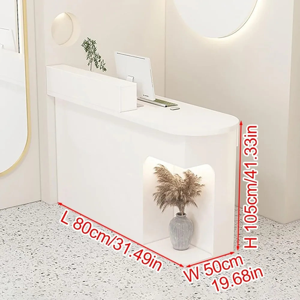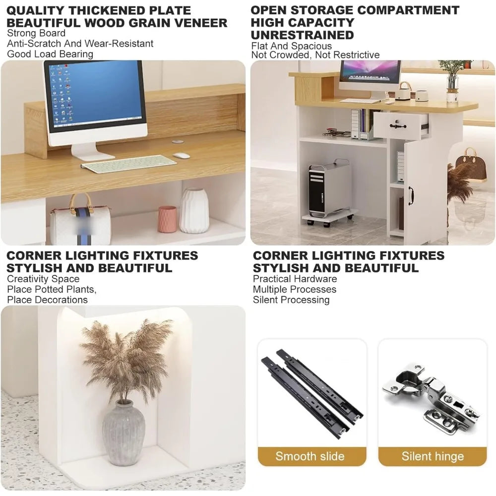 This versatile reception desk is perfect for various settings including homes, offices, lobbies, and stores, serving as an ideal reception, cashier, or computer desk.