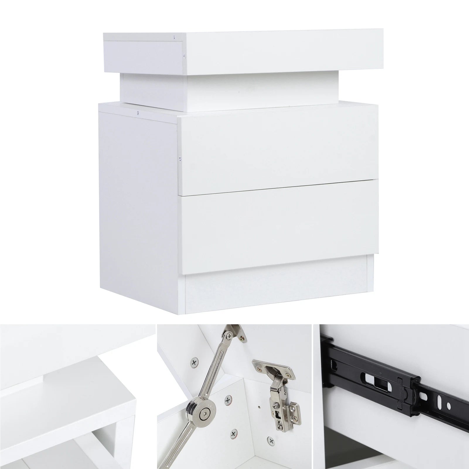 Large Capacity RGB LED Nightstand with 2 Drawers for Bedroom Storage