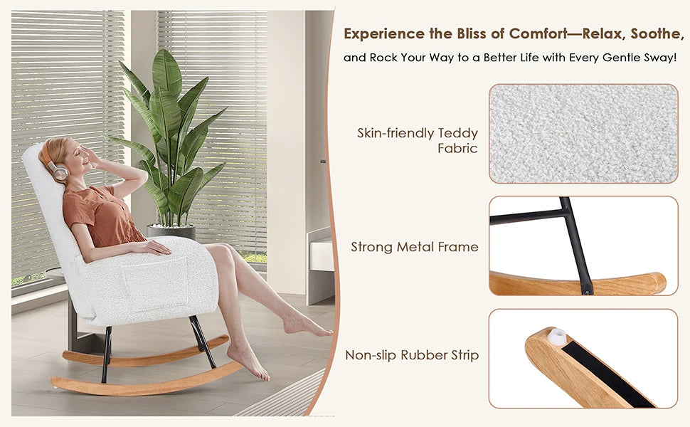 Rocking Chair Nursery Upholstered Glider Armchair High Backrest Padded Seat