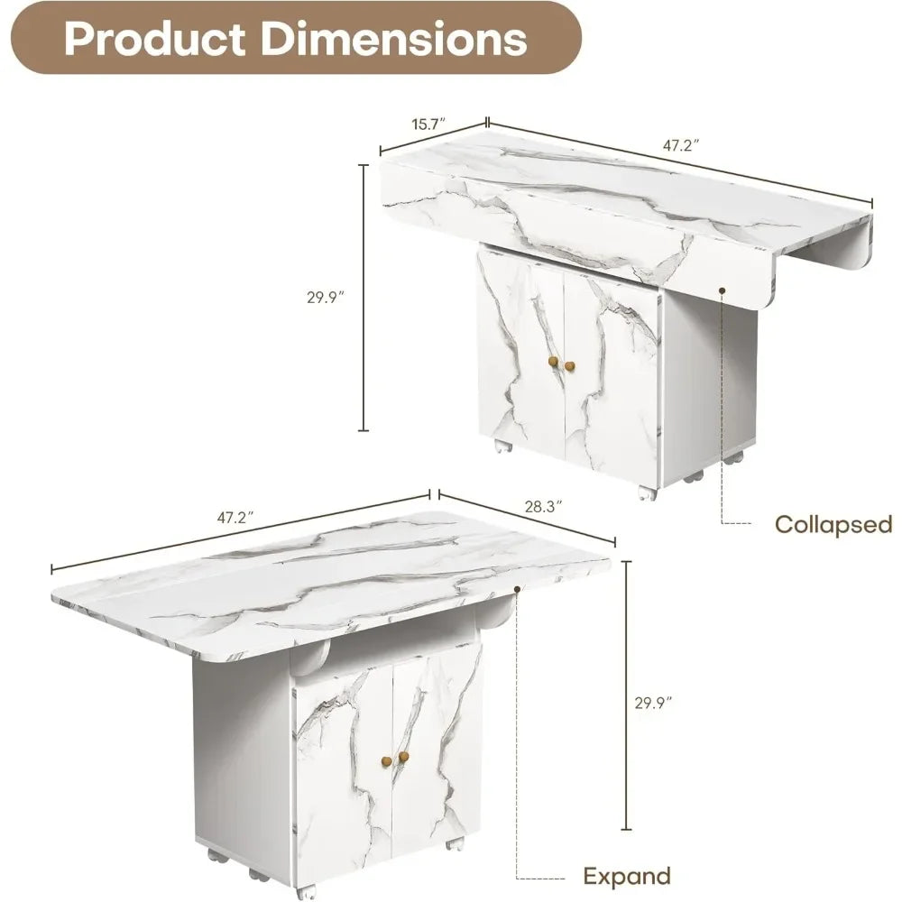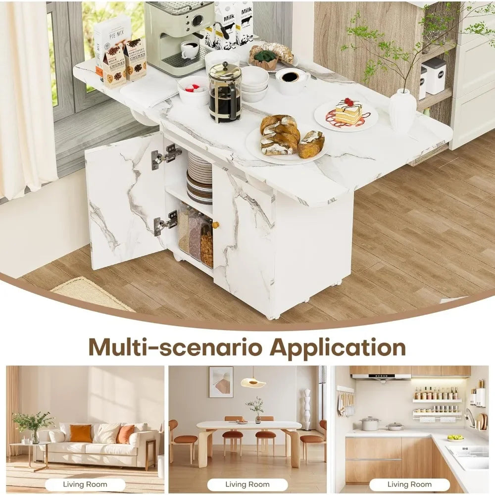 - Multi-Functional Design: Easily transforms from a kitchen island to a dining table for 4–6 people, a desk, or a coffee table. The foldable drop leaf feature saves space and adapts to your lifestyle.