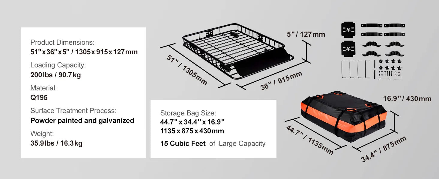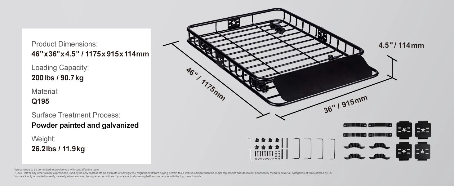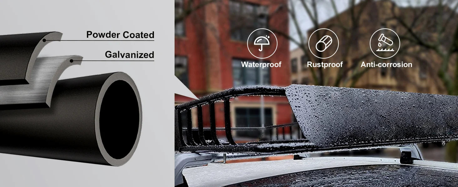 - Superior Quality: Crafted from heavy-duty steel, our cargo basket is powder-coated and galvanized to resist rust and corrosion.