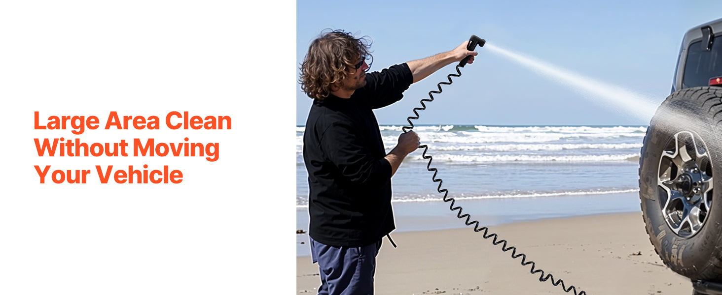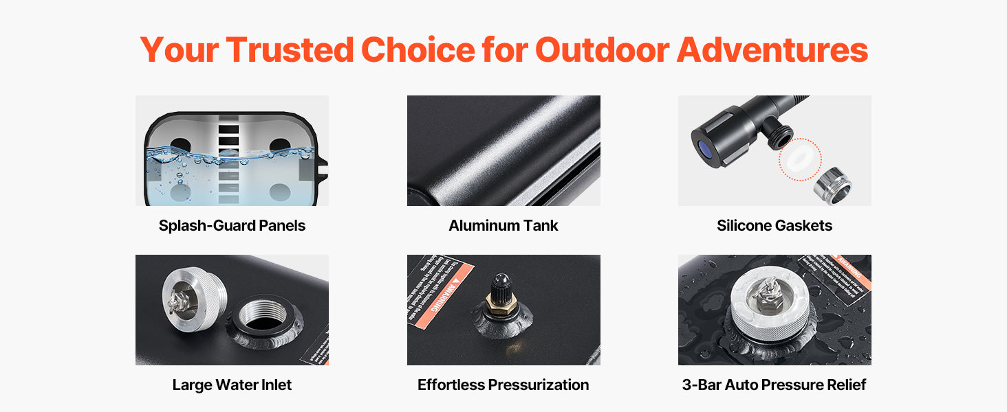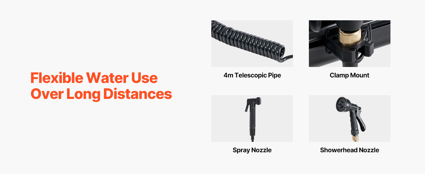 - Versatile Nozzle Options: Equipped with showerhead and spray nozzles, this tank includes a 4m telescopic hose for wide-range, long-distance cleaning. Enjoy a refreshing outdoor shower after your activities!