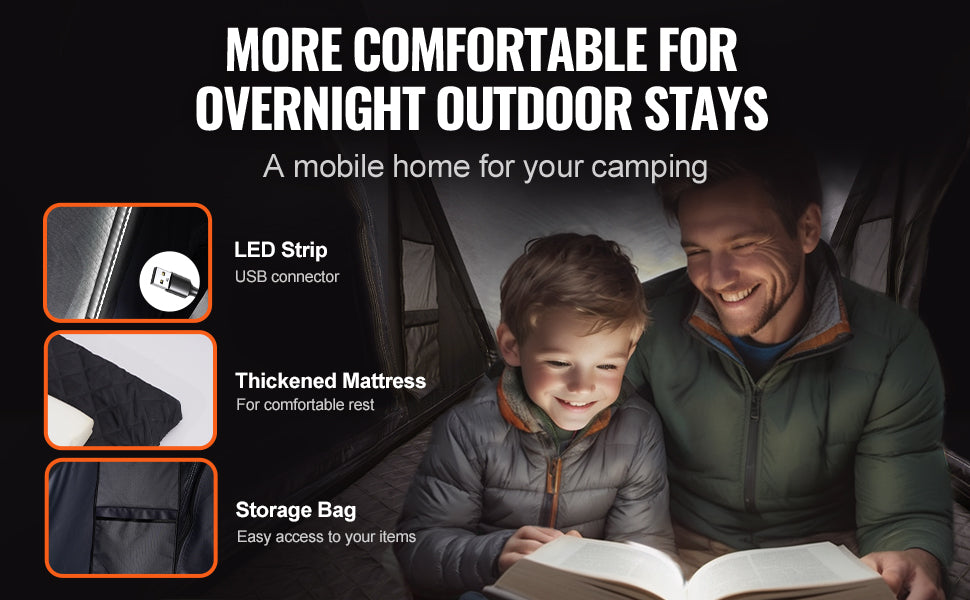Transform your vehicle into a cozy mobile home with the Ljustra Hard Shell Rooftop Tent. Perfect for family adventures, this spacious tent accommodates up to 2 adults and 1 child, providing a comfortable and secure place to rest after a day of exploration.