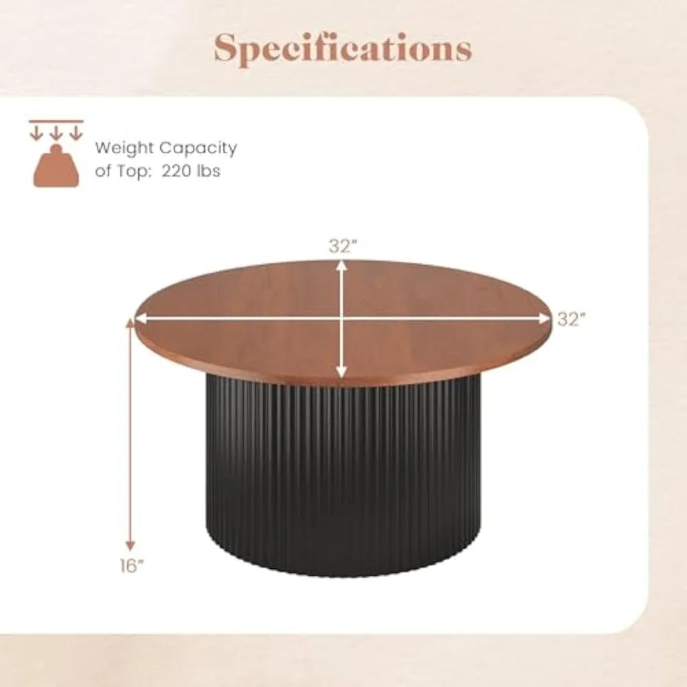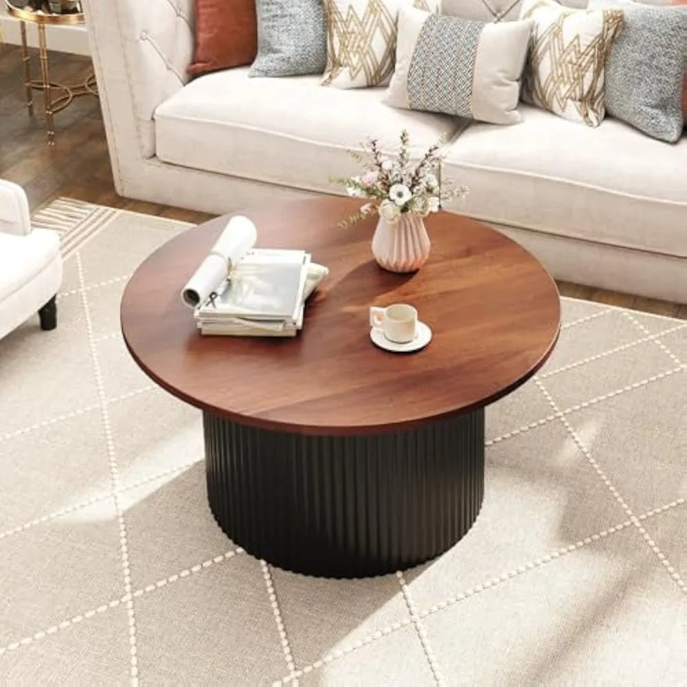 Round Coffee Table Mid Century Modern Wooden Accent Cocktail Table 32"