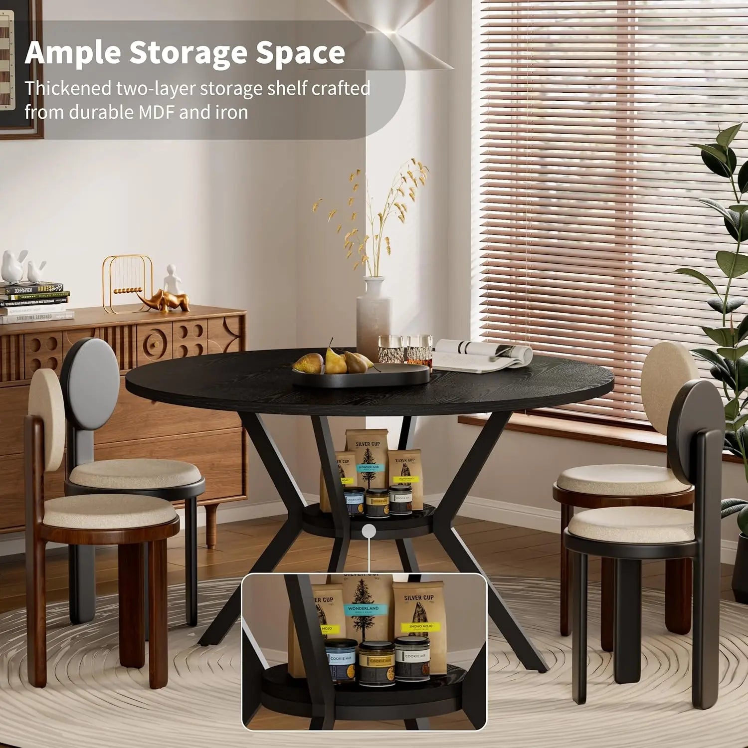 Round Kitchen Dining Table for 4 with Storage Rustic Mid Century Modern