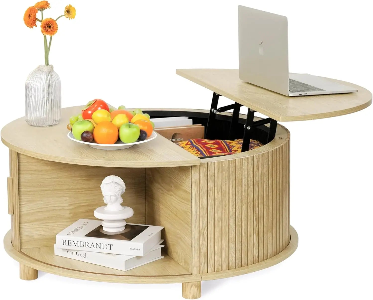 Round Lift Top Coffee Table with Storage Mid Century Modern Design