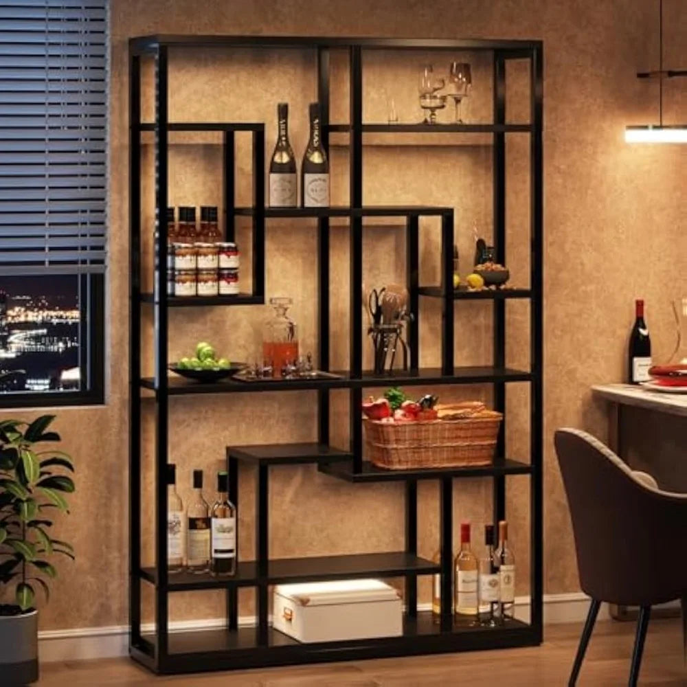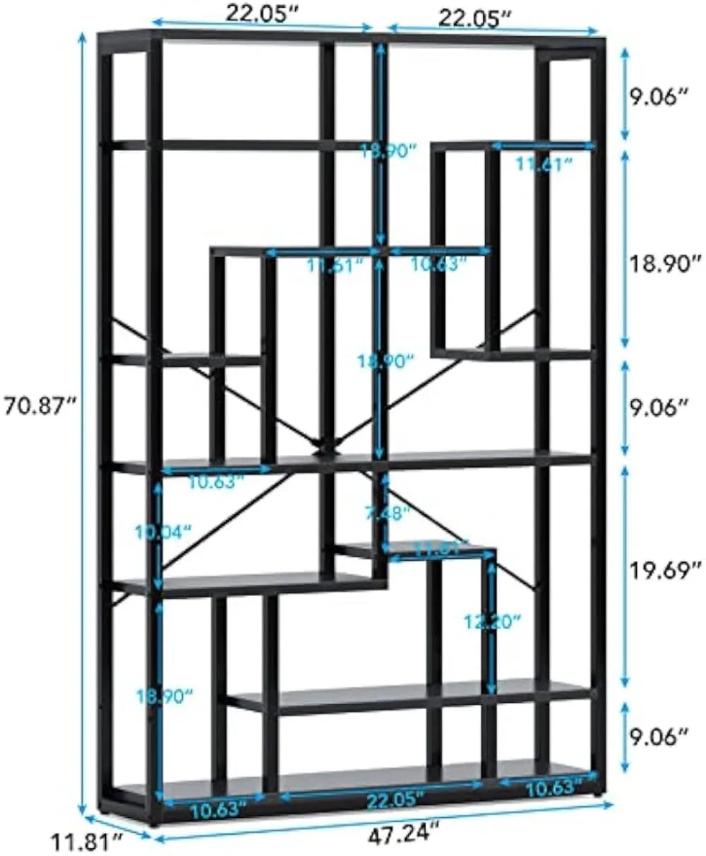 Rustic Industrial 71 Inch 9 Tier Bookshelf Tall Bookcase Organizer