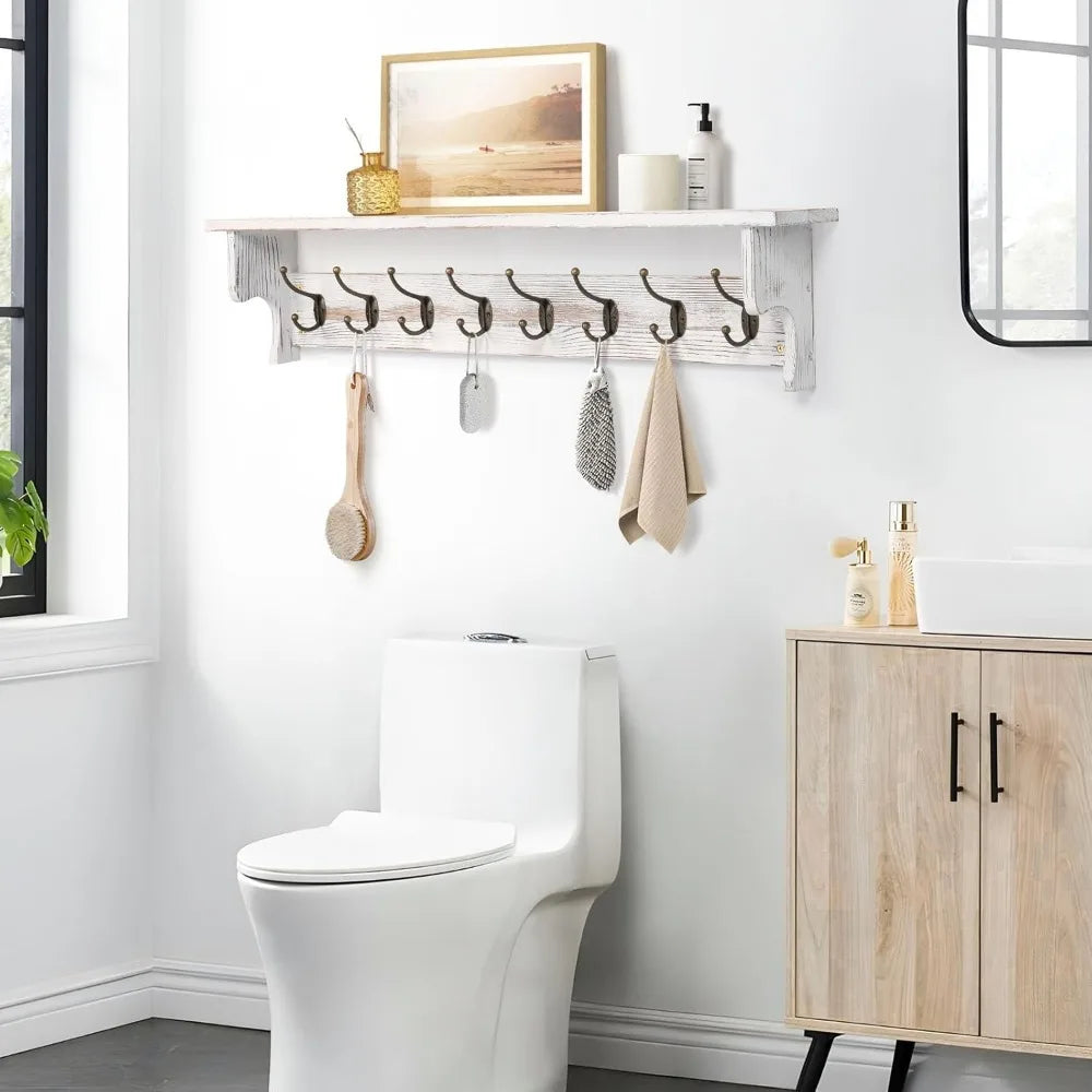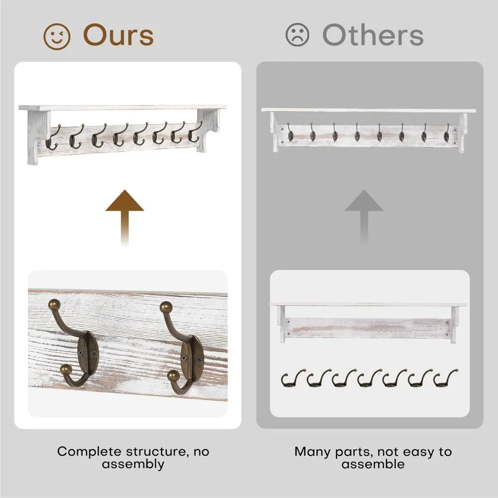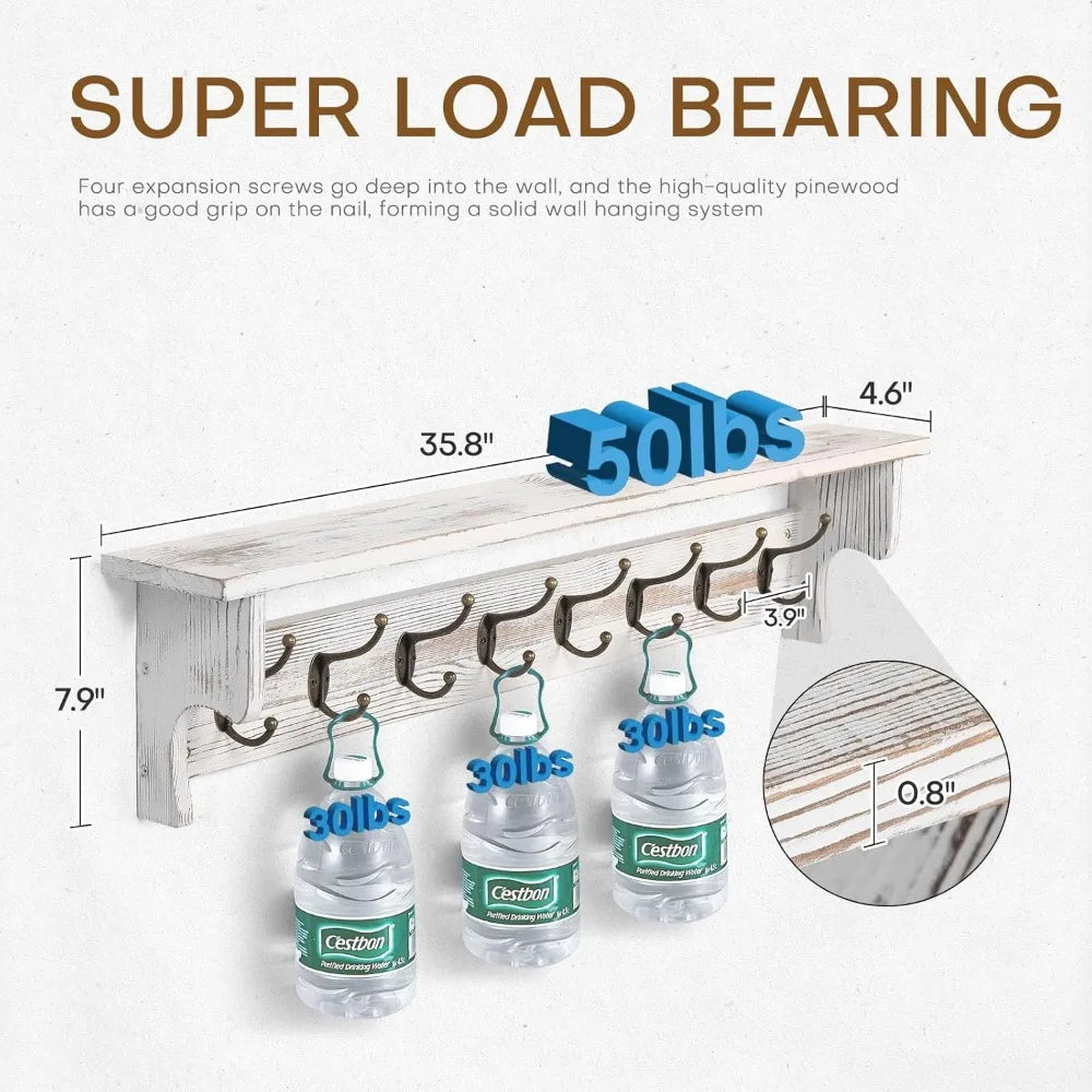 Rustic Wood Coat Rack Wall Mount with Shelf for Entryway Storage