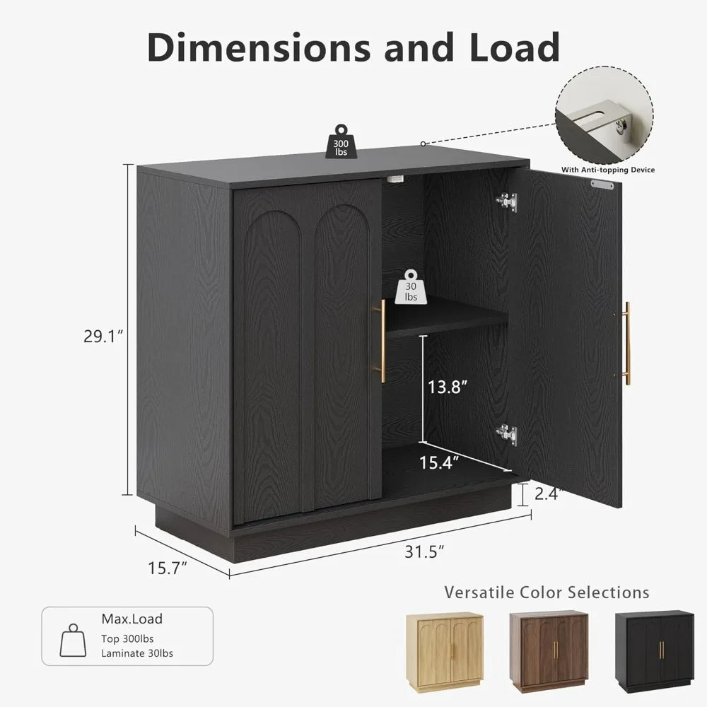 Modern Sideboard Buffet Cabinet Arched Doors Adjustable Shelf Storage