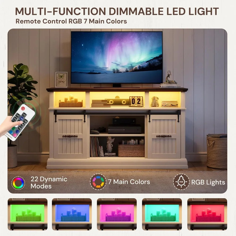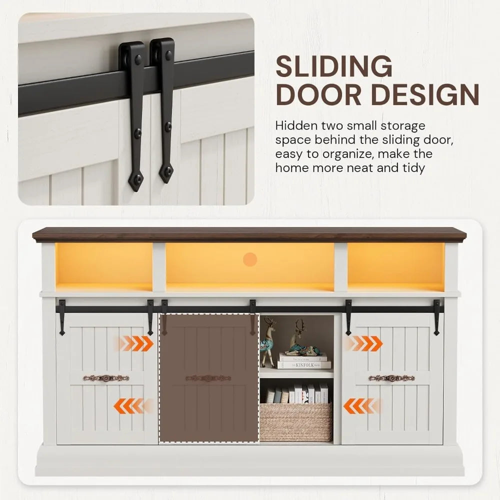 Sideboard Buffet Cabinet 58" Sliding Barn Doors LED Lights Farmhouse Decor