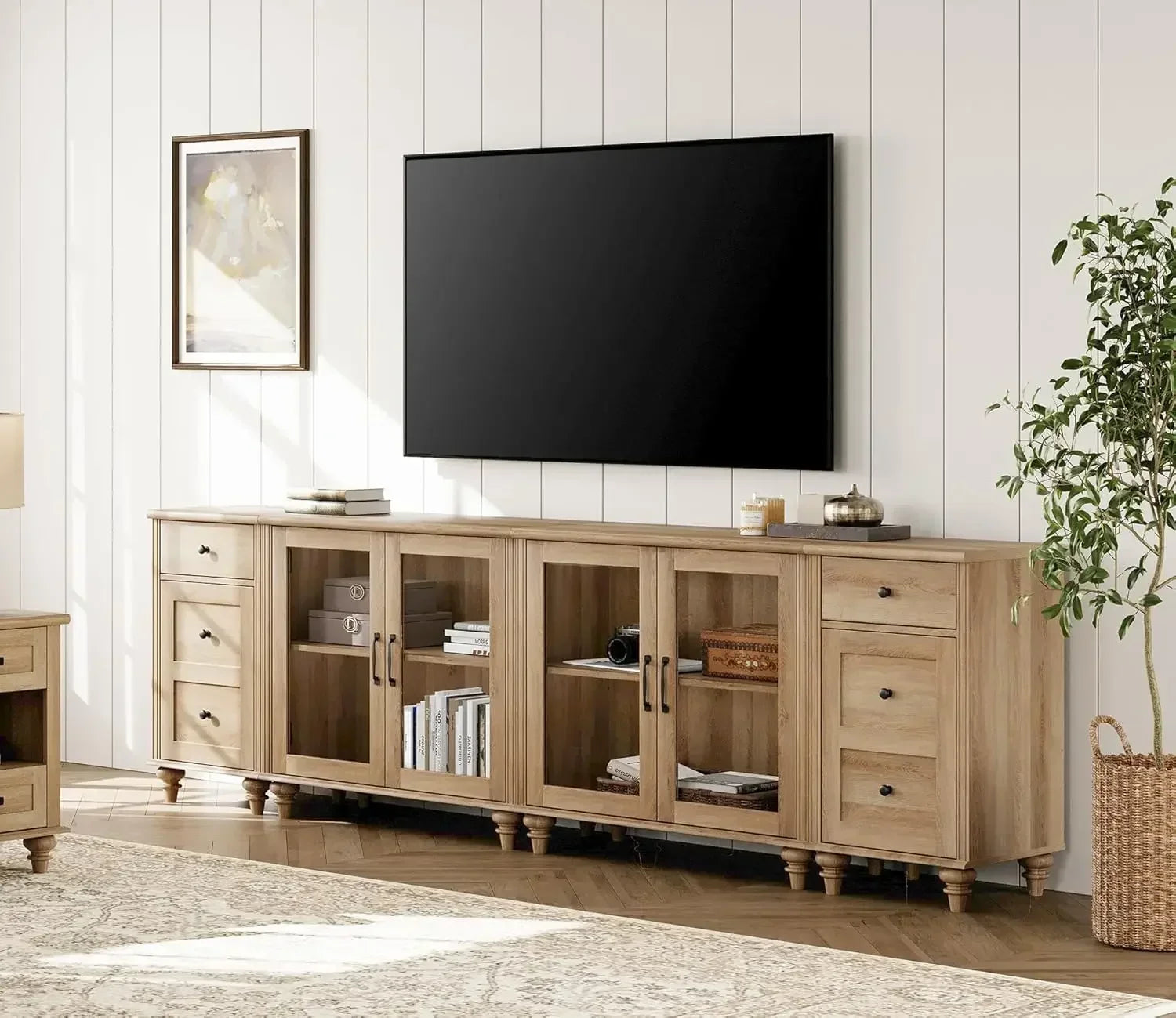 - 4-in-1 Multipurpose Design: Utilize this sideboard as two glass cabinets and two end tables, making it perfect for kitchen storage, dining areas, or as an entertainment center.