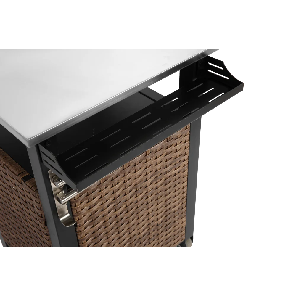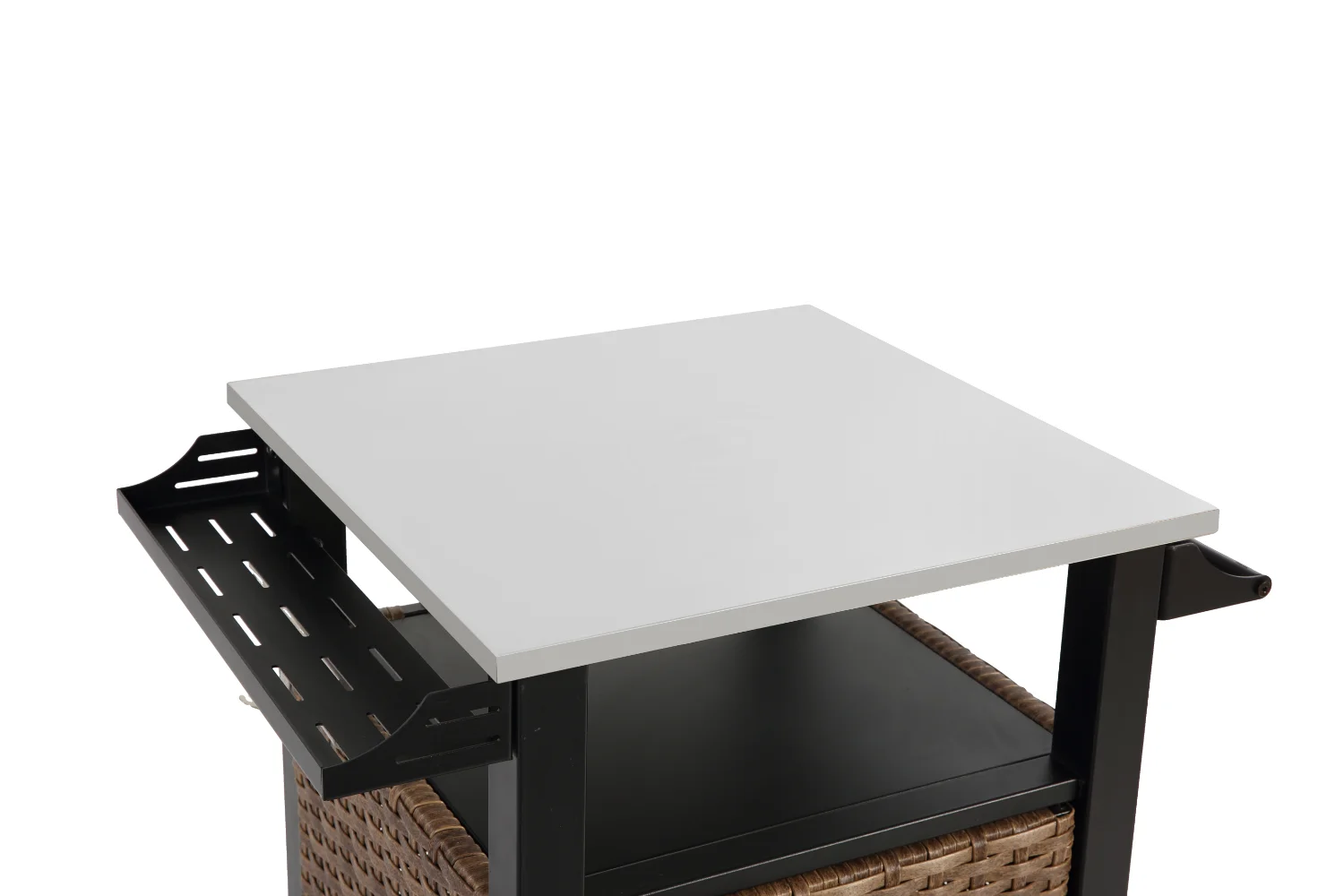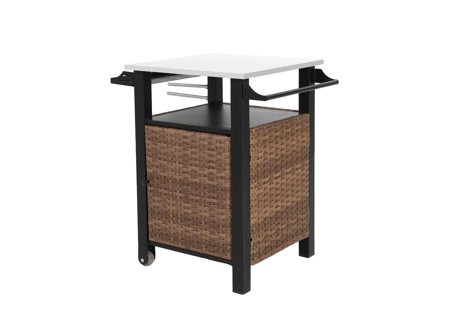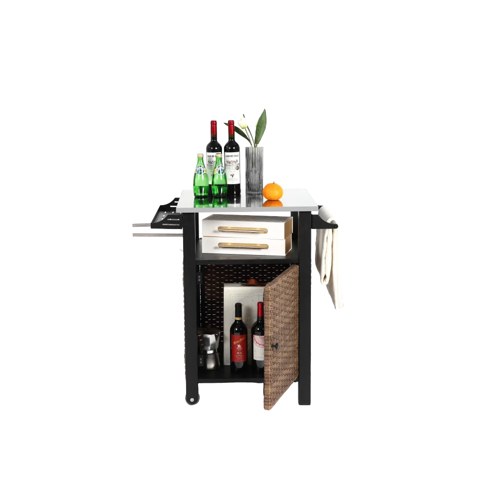 Single Door Bar Cart Outdoor Kitchen Wicker Rolling Cart Storage Cabinet