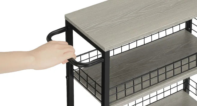 - Material: MDF shelves with metal frame