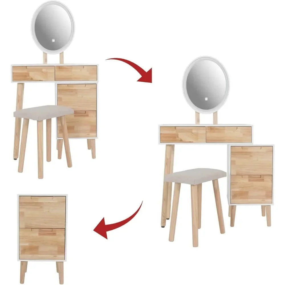 Small Vanity with 4 Drawers Adjustable Lighting Mirror for Small Spaces