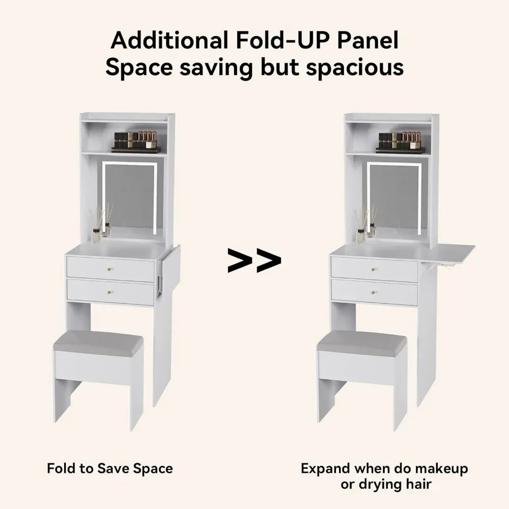 Small Vanity Desk Set with Lighted Mirror Storage Chair for Makeup