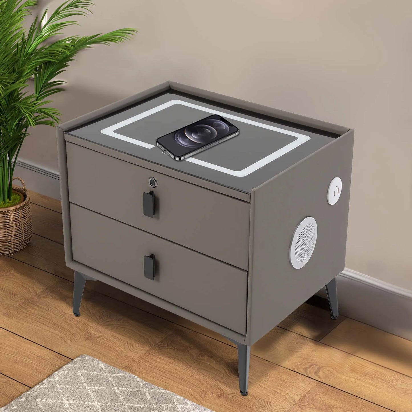 Smart Bedside Table with Bluetooth Speaker and USB Charging Drawers