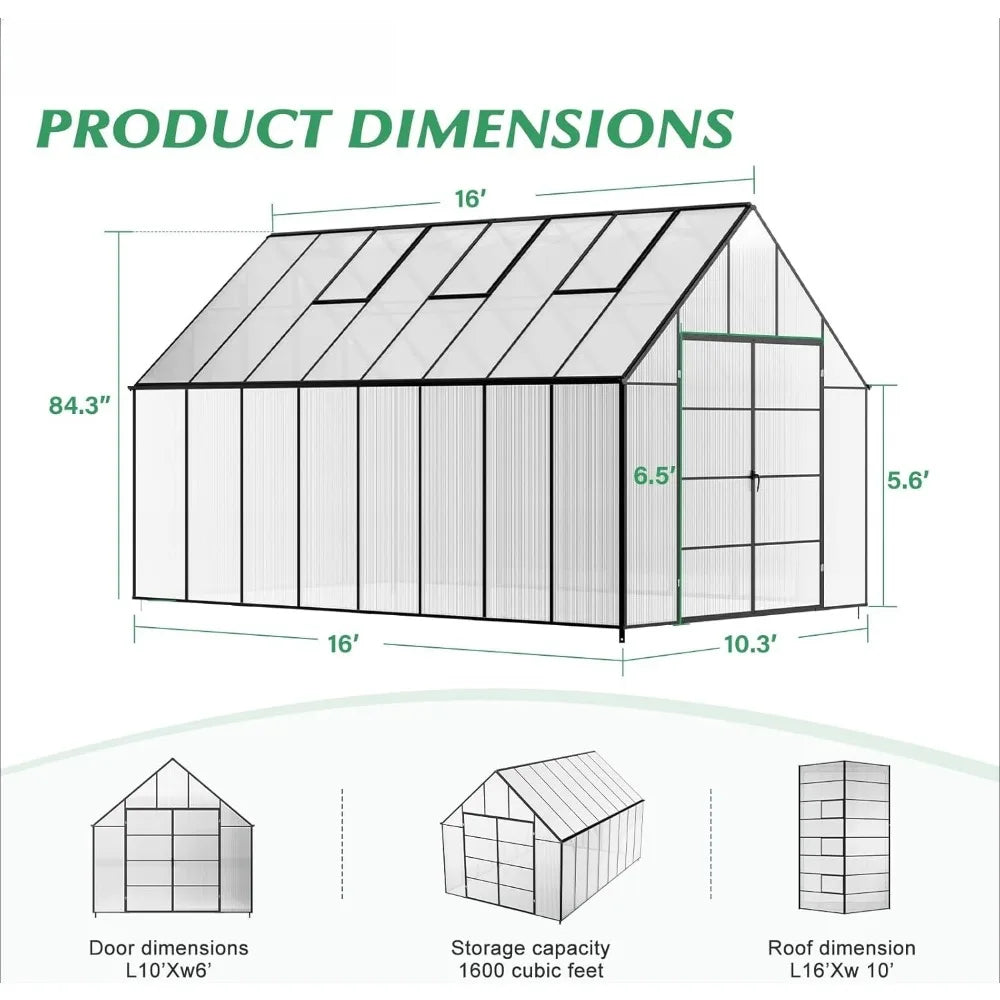 - Durable Polycarbonate Panels: 4mm 800G multi-wall panels block 99% of sunlight while transmitting 90% of light, outlasting regular PVC greenhouses.