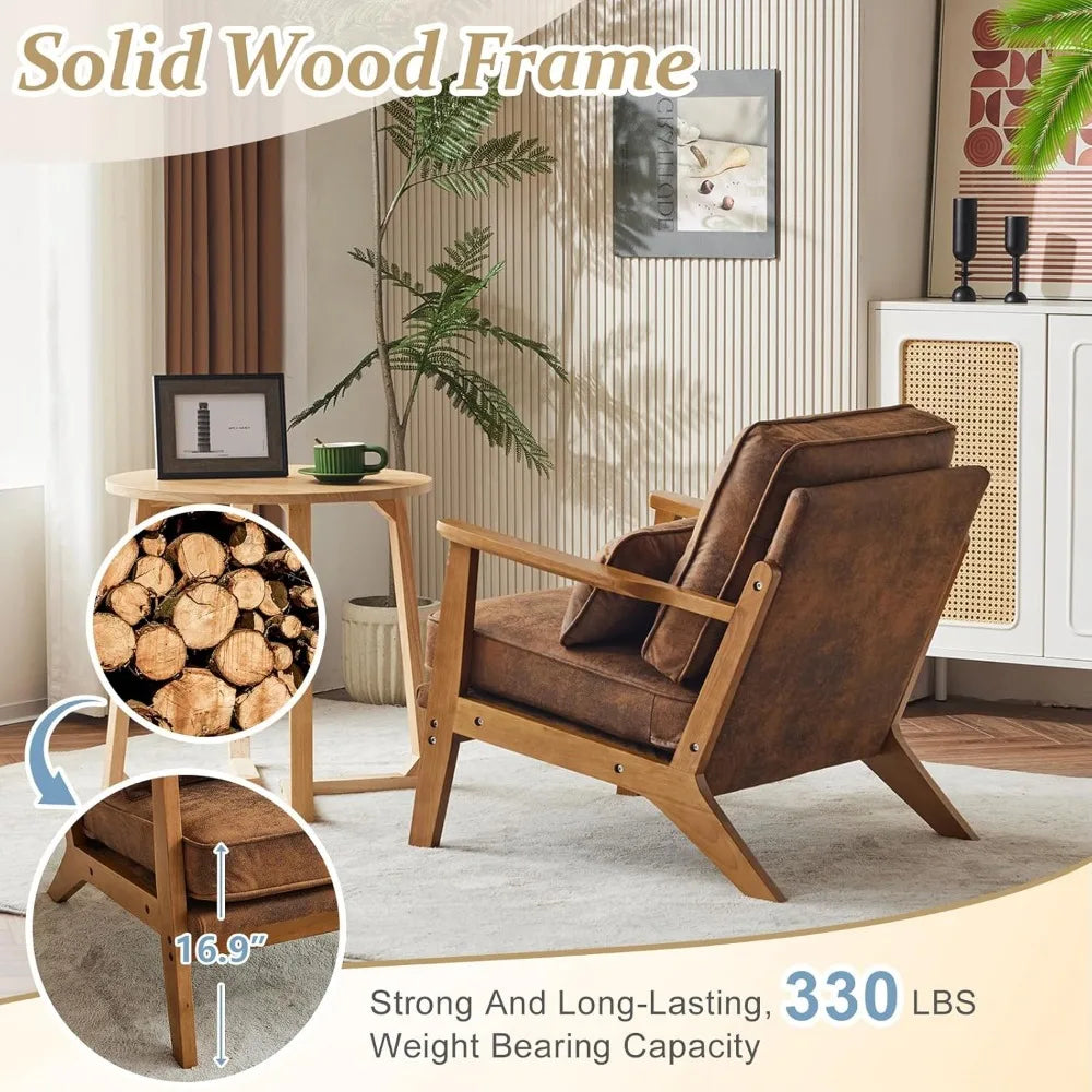 Solid Wood Wide Armrests Accent Chair Set of 2 Mid Century Modern