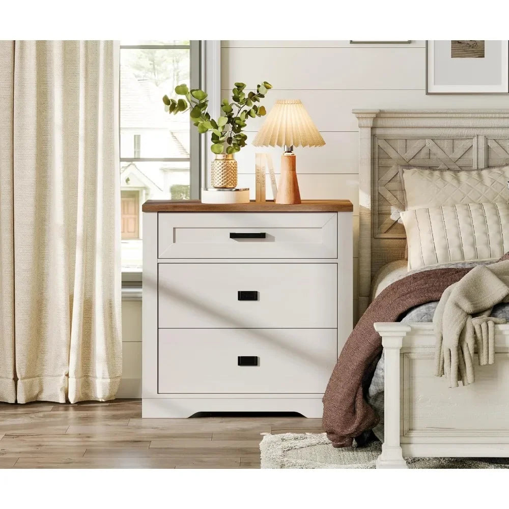 Solid Wood Nightstand Set of 2 Farmhouse Dresser with Drawers