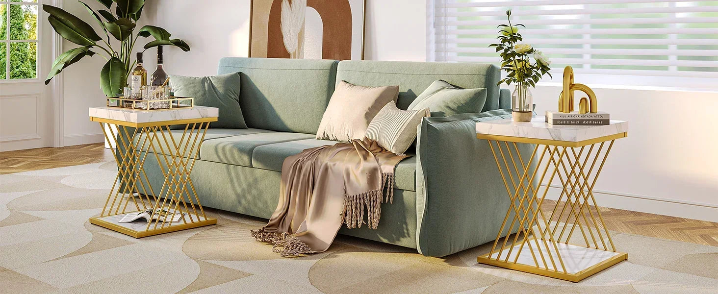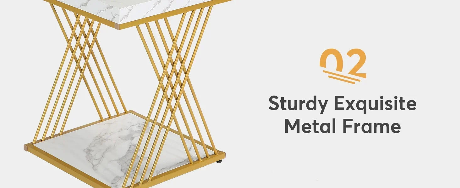 Introducing the Ljustra Square End Table, a stunning blend of modern design and practical functionality. This small bedside table features a chic faux marble top complemented by elegant gold accents, making it the perfect addition to any living room, bedroom, or cozy nook.