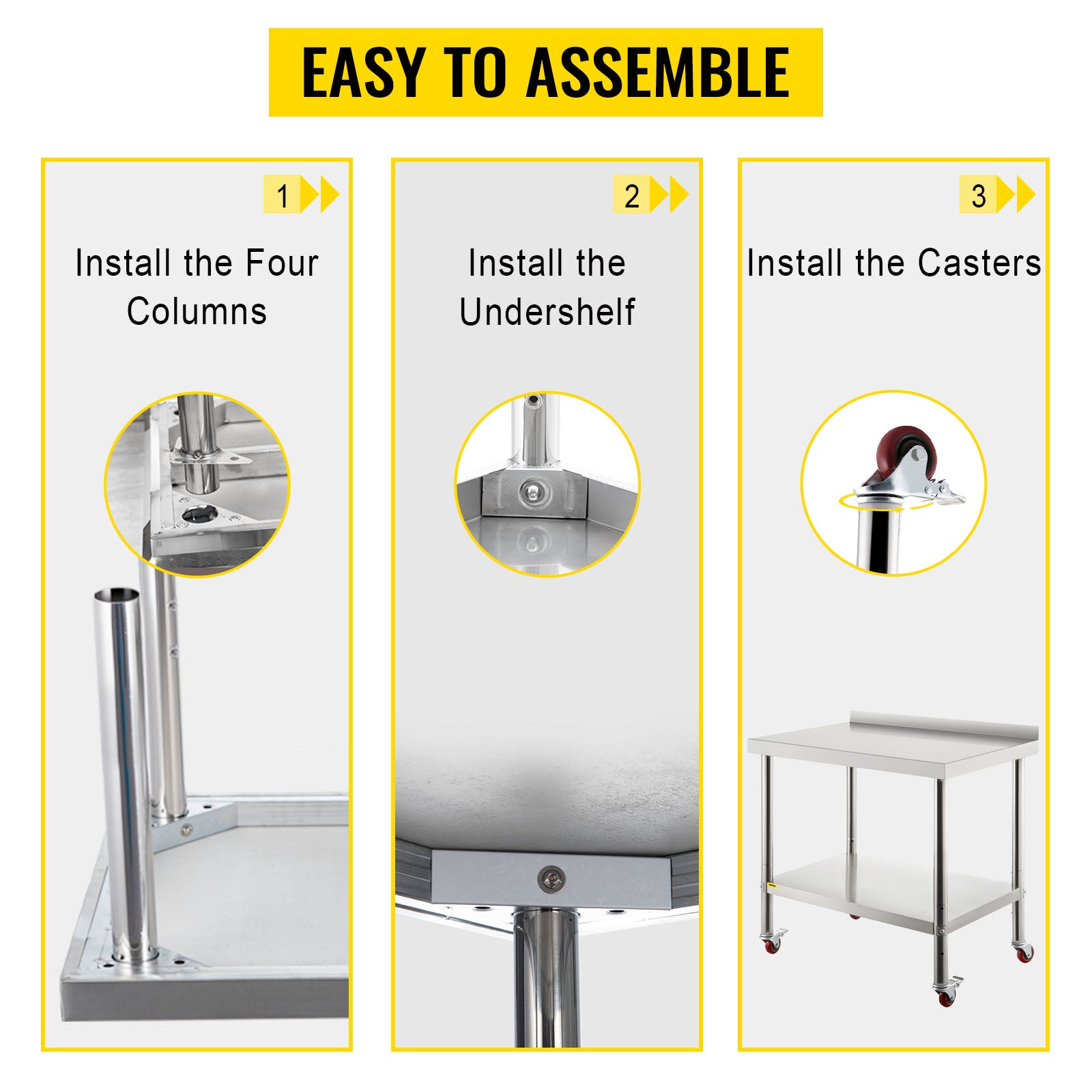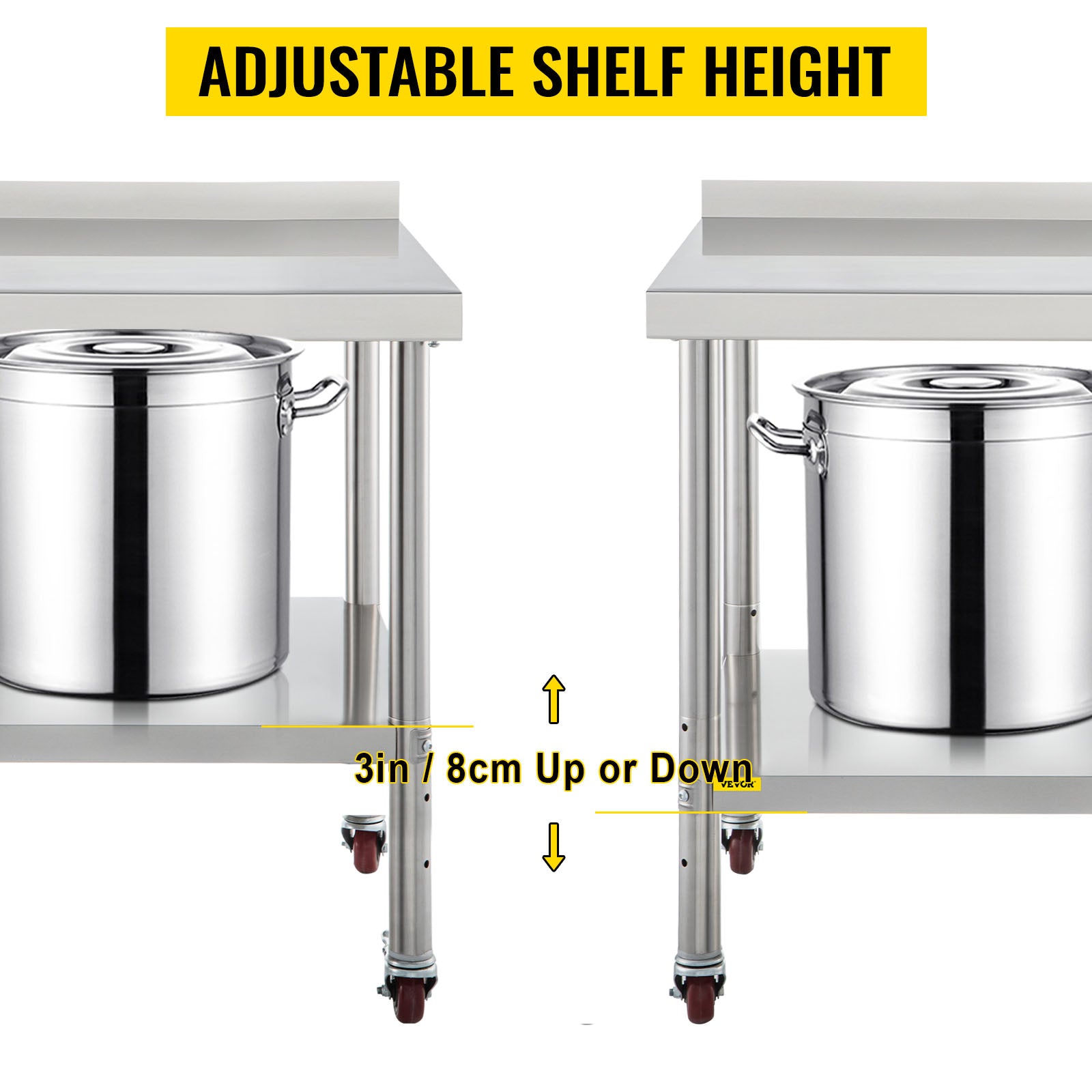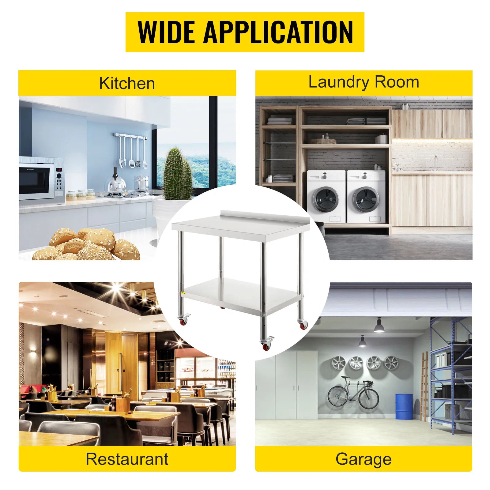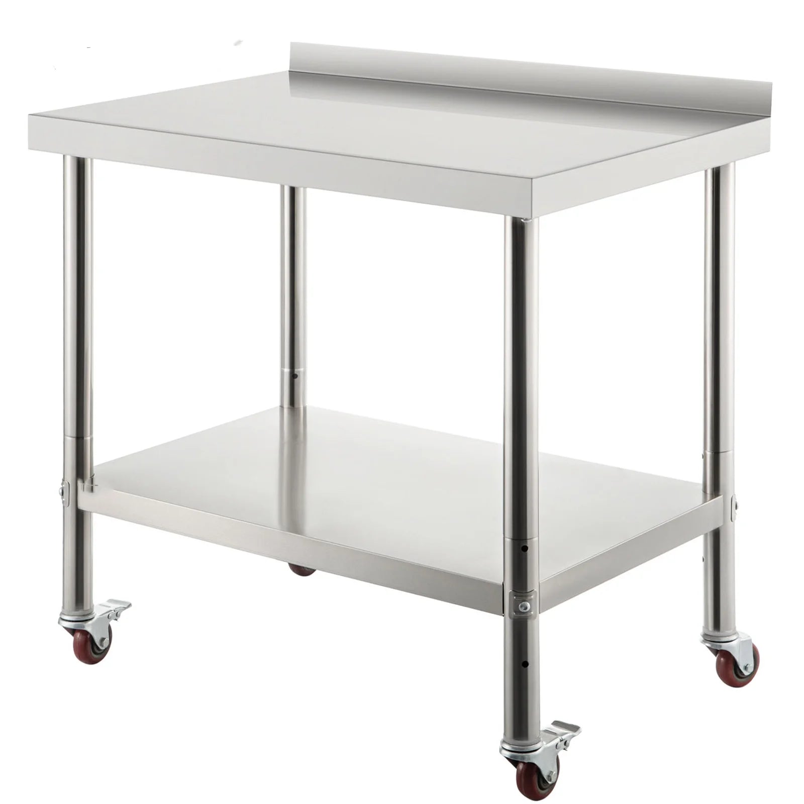 Heavy Duty Stainless Steel Kitchen Prep Table with Backsplash and Casters