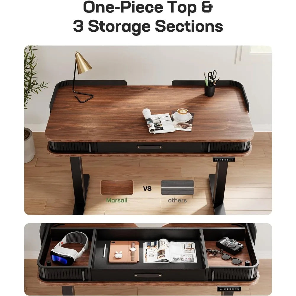 - Seamless Surface and Expanded Storage: The one-piece desktop simplifies assembly while increasing strength. Enjoy ample storage with a large central drawer and two side compartments to keep your essentials organized.