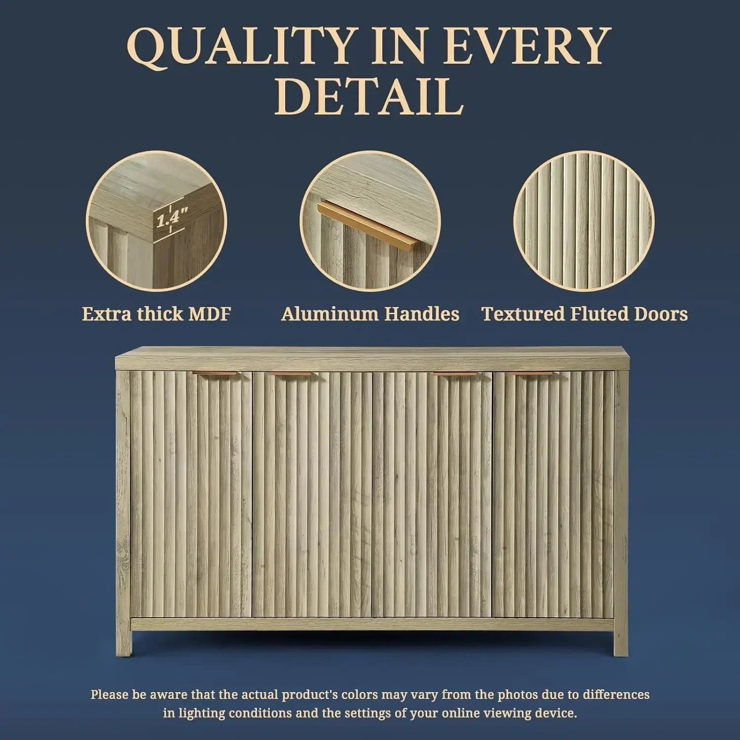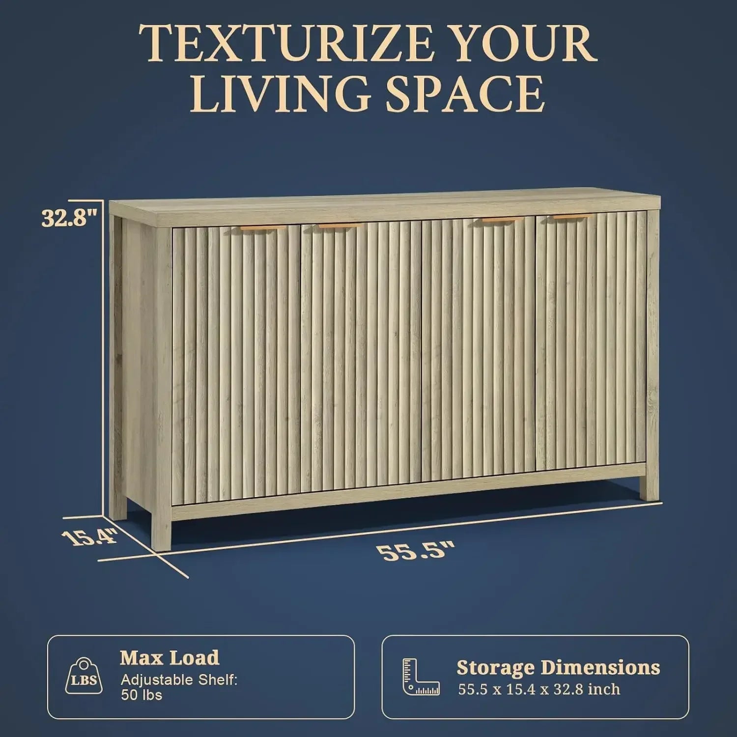 Elevate your living room or dining area with the stunning Ljustra Storage Cabinet. This multifunctional sideboard is not just a piece of furniture; it's a statement of style and practicality. Designed with an artistic fluted pattern, this cabinet brings a modern touch to your home while providing ample storage.