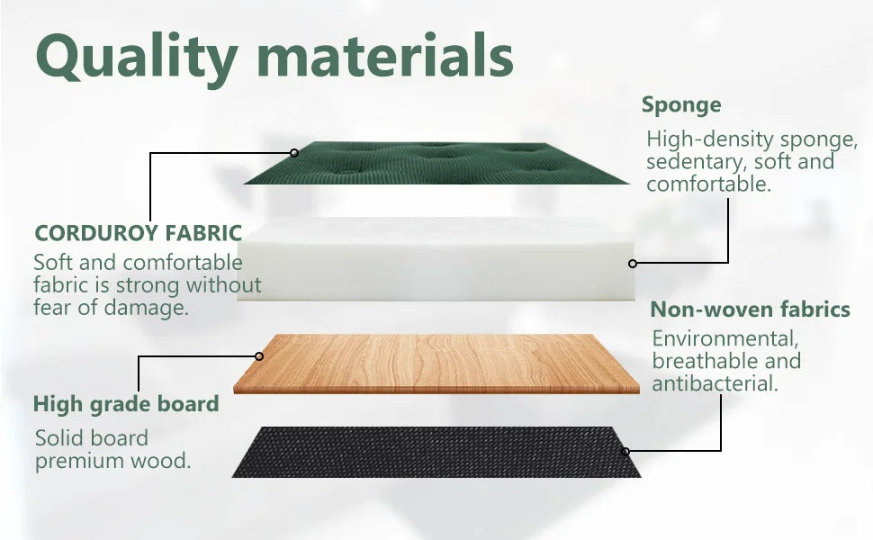 - Sturdy and Durable: Built with a solid engineered wood frame and rubberwood legs, it supports up to 500 pounds, ensuring it remains stable and secure.