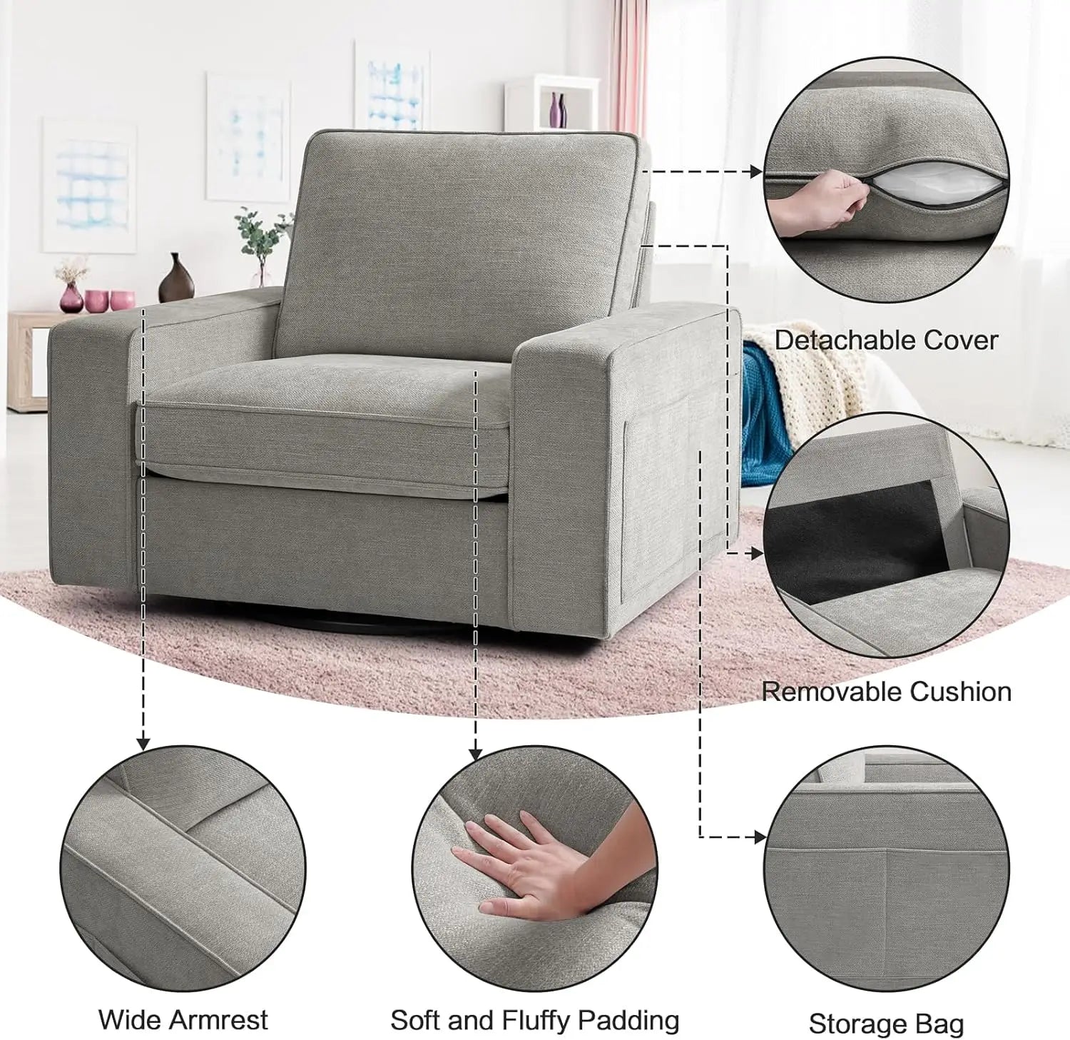 - 360° Swivel Functionality: Effortlessly rotate to engage in conversations or enjoy your favorite shows without moving the chair.