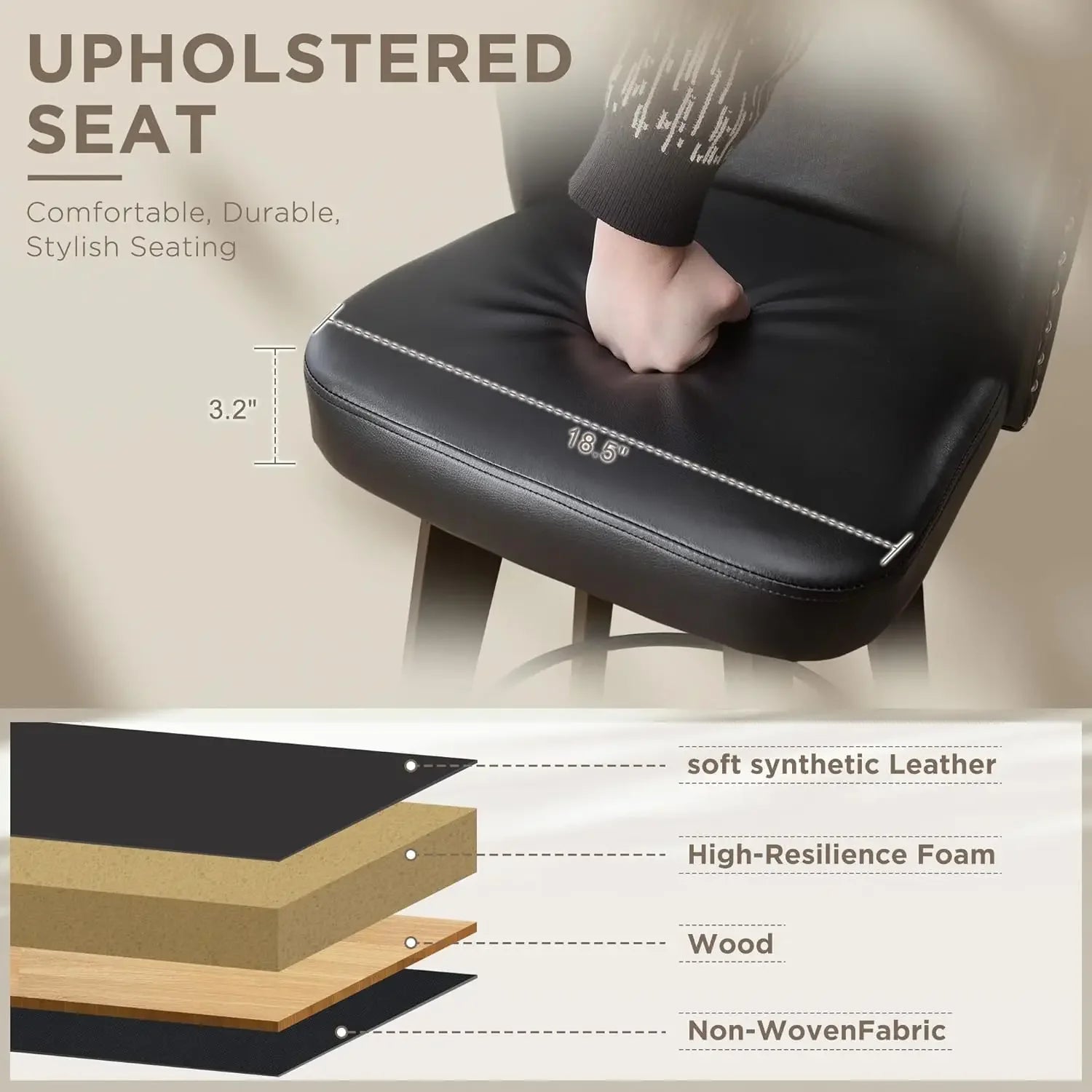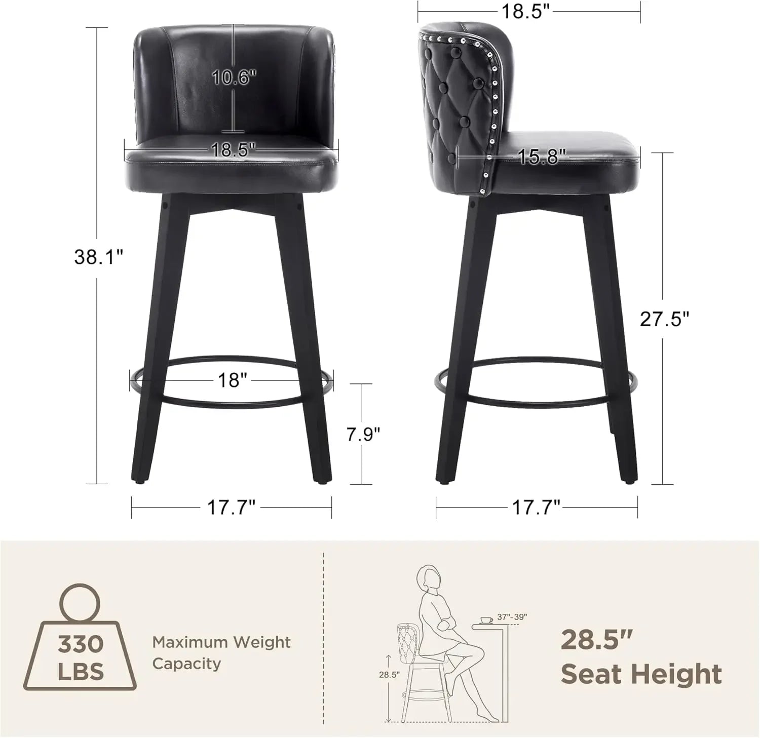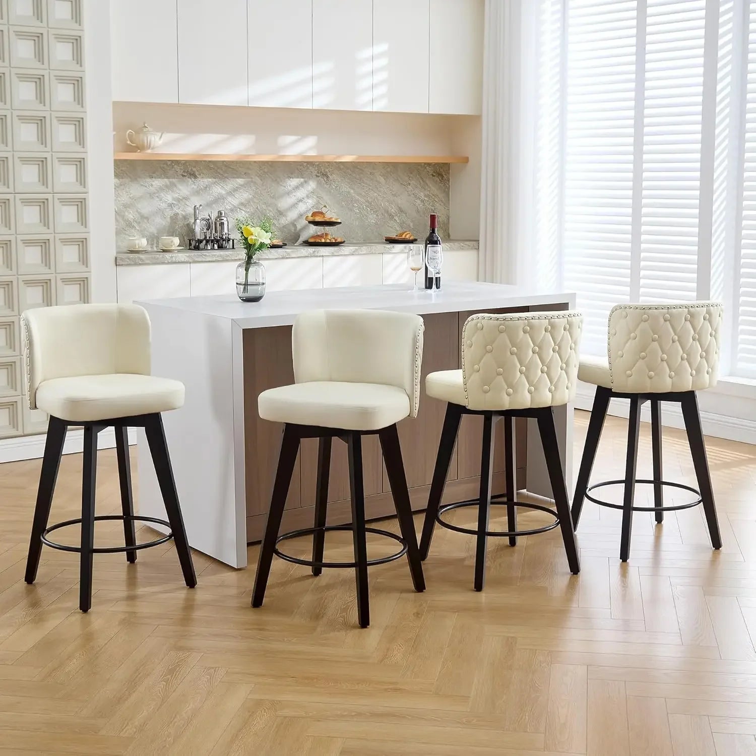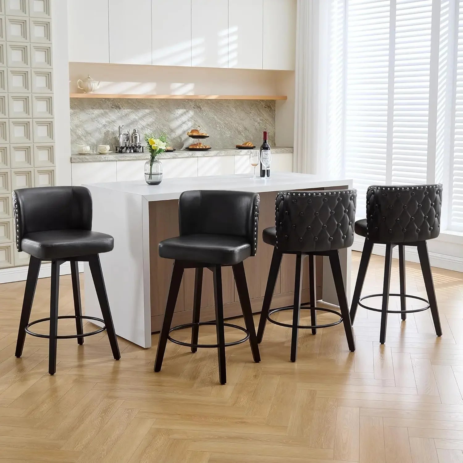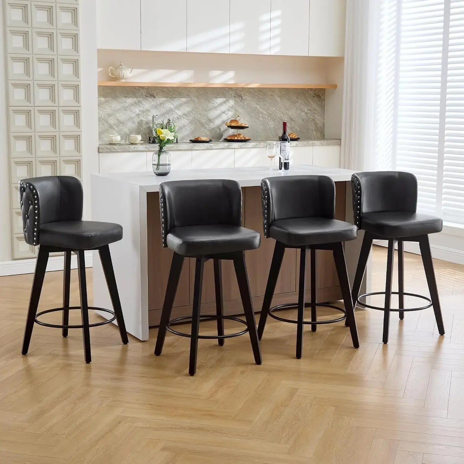Swivel Bar Stool Set of 4 Faux Leather Low Back Kitchen Stools 27.5 Inch