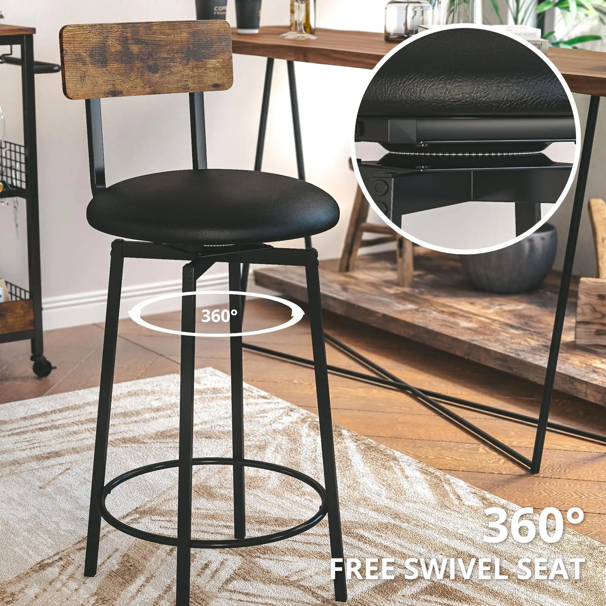 Ljustra Swivel Bar Stools Set of 2 PU Upholstered Kitchen Stools