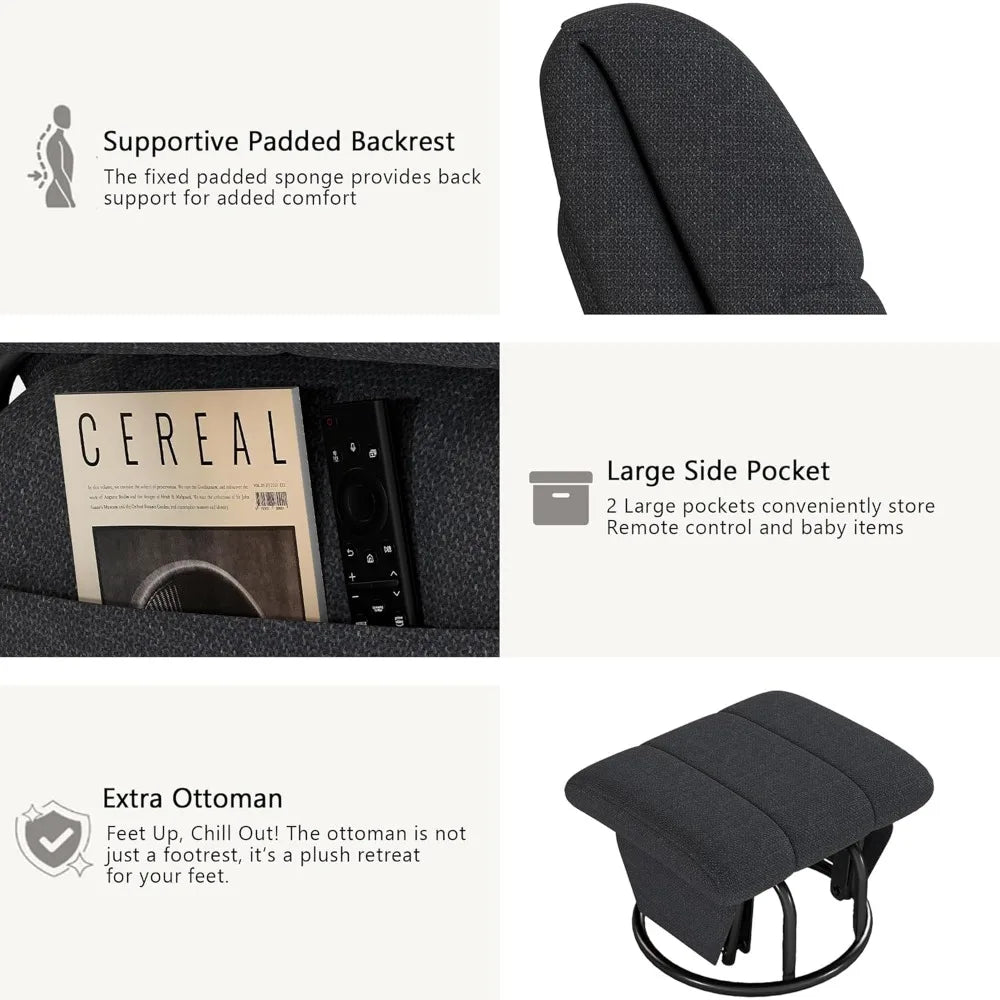 360 Swivel Glider Recliner with Ottoman Indoor Rocking Chair
