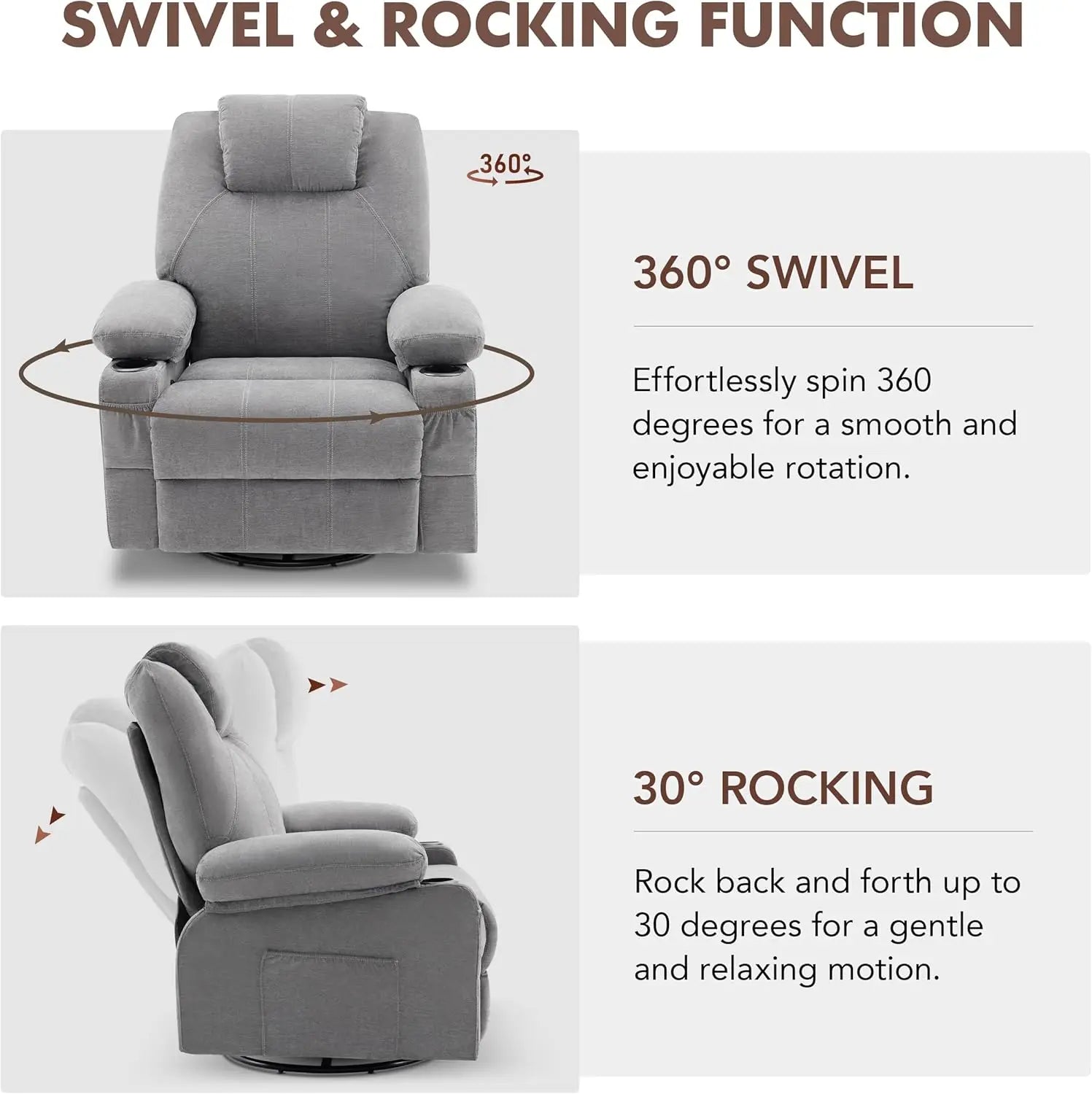 Swivel Rocker Recliner Chair with Heat Massage 360 Degree Swivel USB