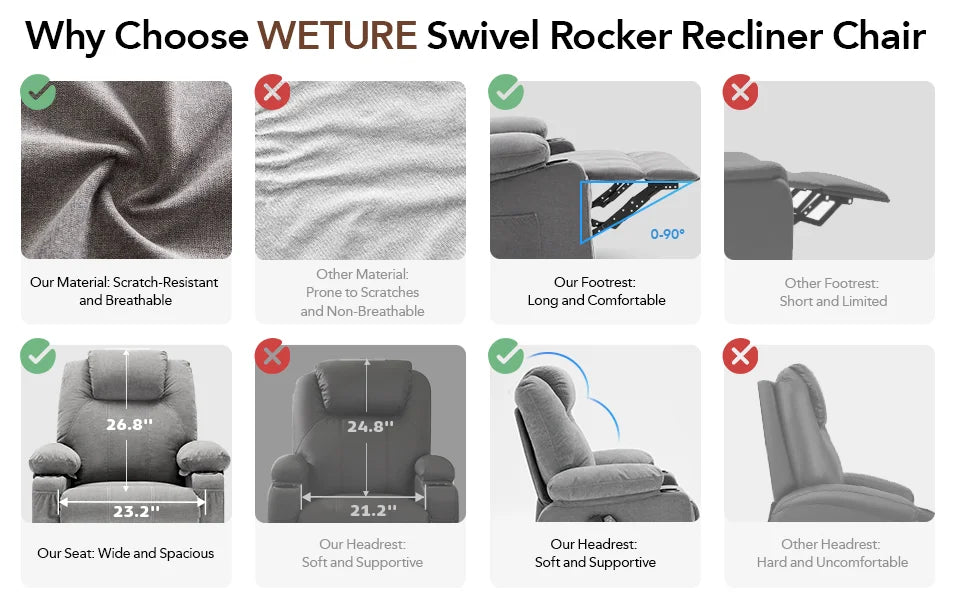 Transform your relaxation time with the Ljustra Swivel Rocker Recliner Chair. This innovative piece combines style and functionality, designed to enhance your living space while providing ultimate comfort.