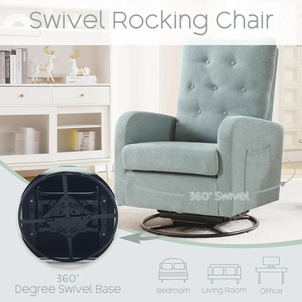 Swivel Rocking Chair Nursery Glider Upholstered Linen Armchair Indoor