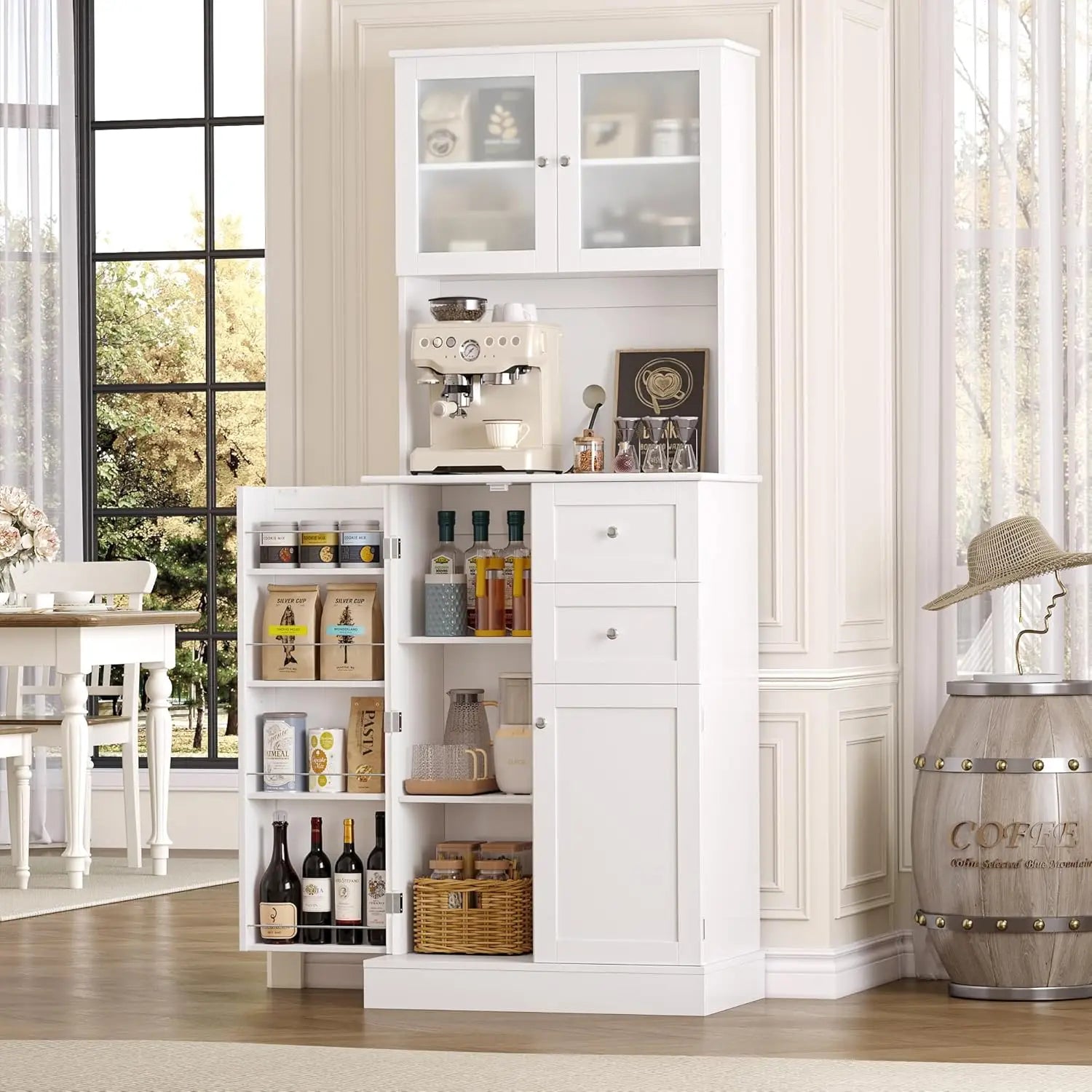72 Inch Tall Kitchen Pantry Storage Cabinet Modern Hutch with Doors Shelves