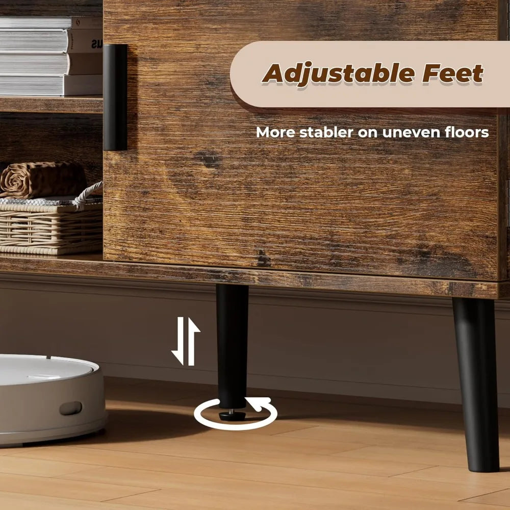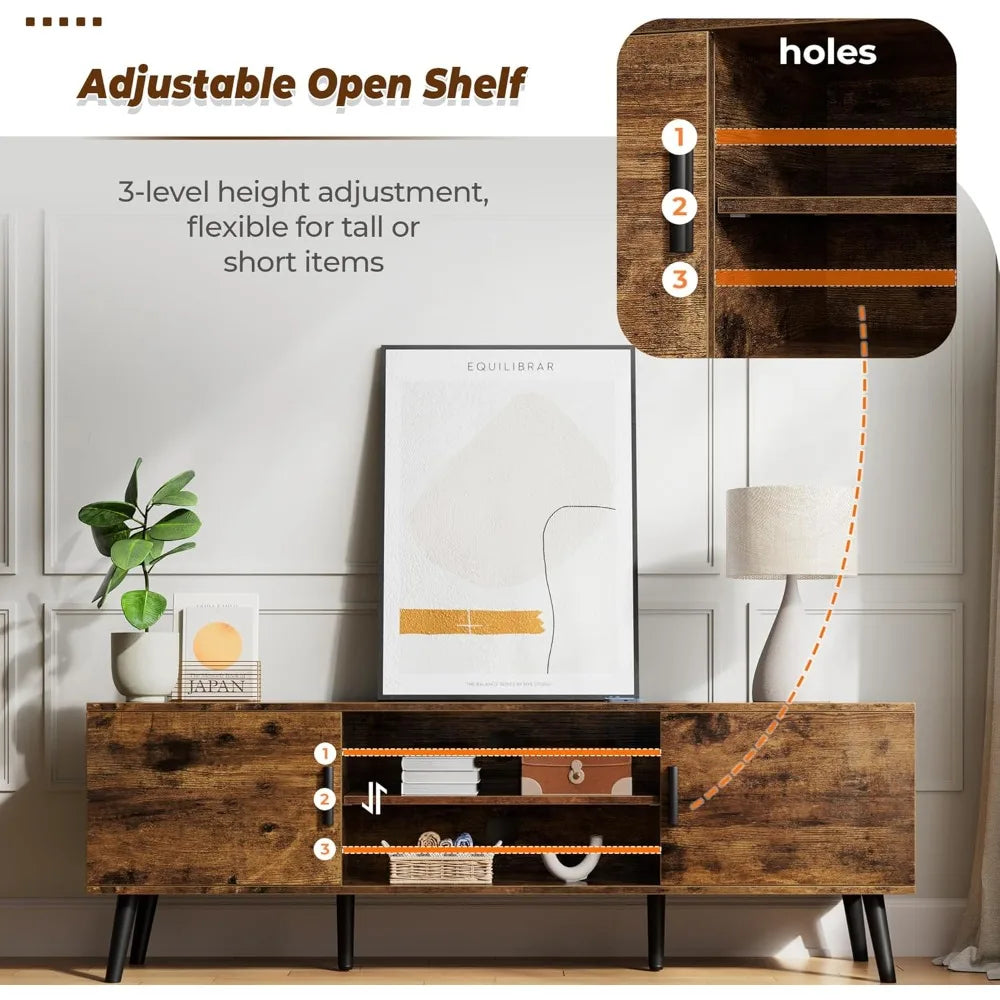 TV Stand for 55 Inch TV with Adjustable Shelf and 2 Cabinets