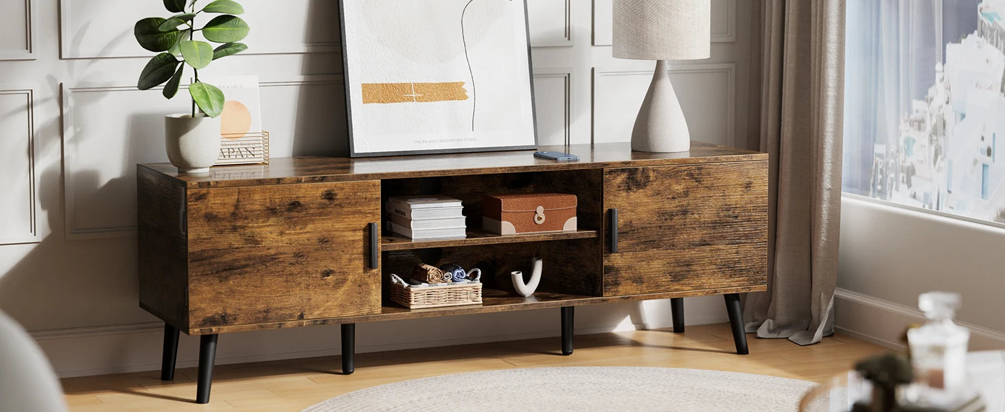 - Adjustable Storage: Features a middle shelf with adjustable heights and two large cabinets to keep your space organized and clutter-free.