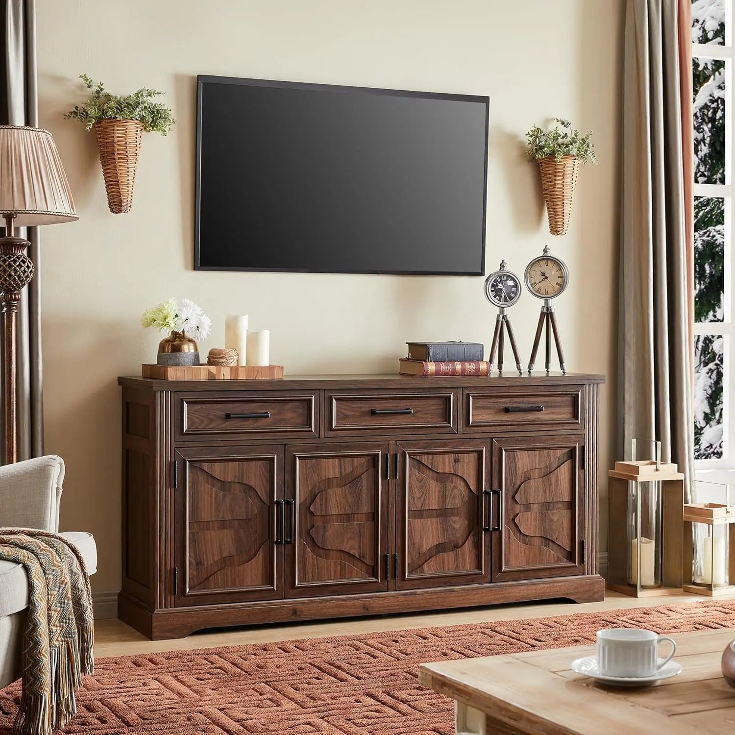 - Spacious Storage: Equipped with 4 doors and 3 drawers, this TV stand provides ample space to organize your media essentials, from DVDs to gaming consoles.
