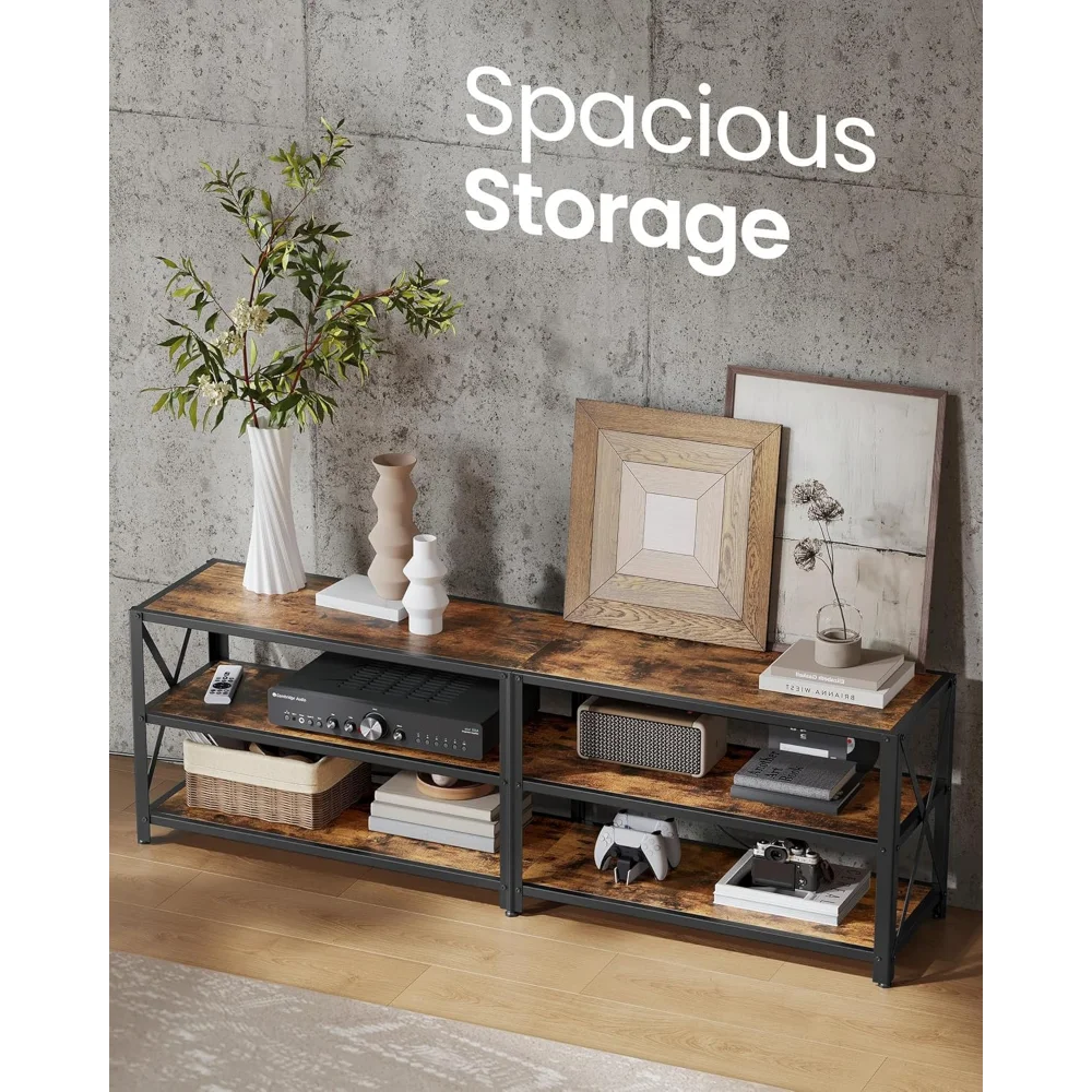 - Spacious Open Storage: With 3 open shelves, this TV console table neatly stores your DVDs, books, speakers, and decorative items while allowing for easy cable management.