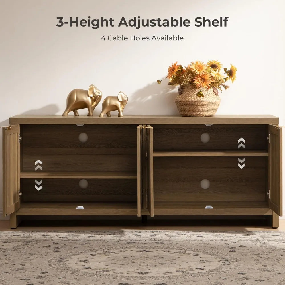 Introducing the Ljustra TV Stand, a perfect blend of modern functionality and elegant design. This stunning TV stand features unique rattan doors that add a touch of sophistication to any living room, bedroom, or hallway.